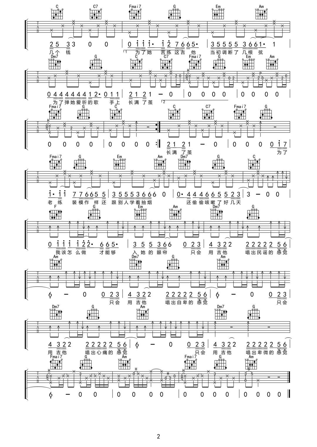 曲谱介绍: 刘大壮《吉他不及她》吉他弹唱谱,采用C调指法编配原版,共有2张高清图谱,免翻页排版设计。