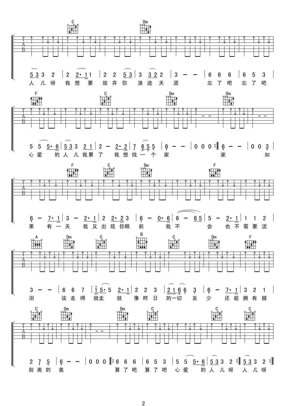曲谱介绍: 伍佰《算了吧》吉他弹唱谱,采用C调指法编配,共有3张高清图谱。