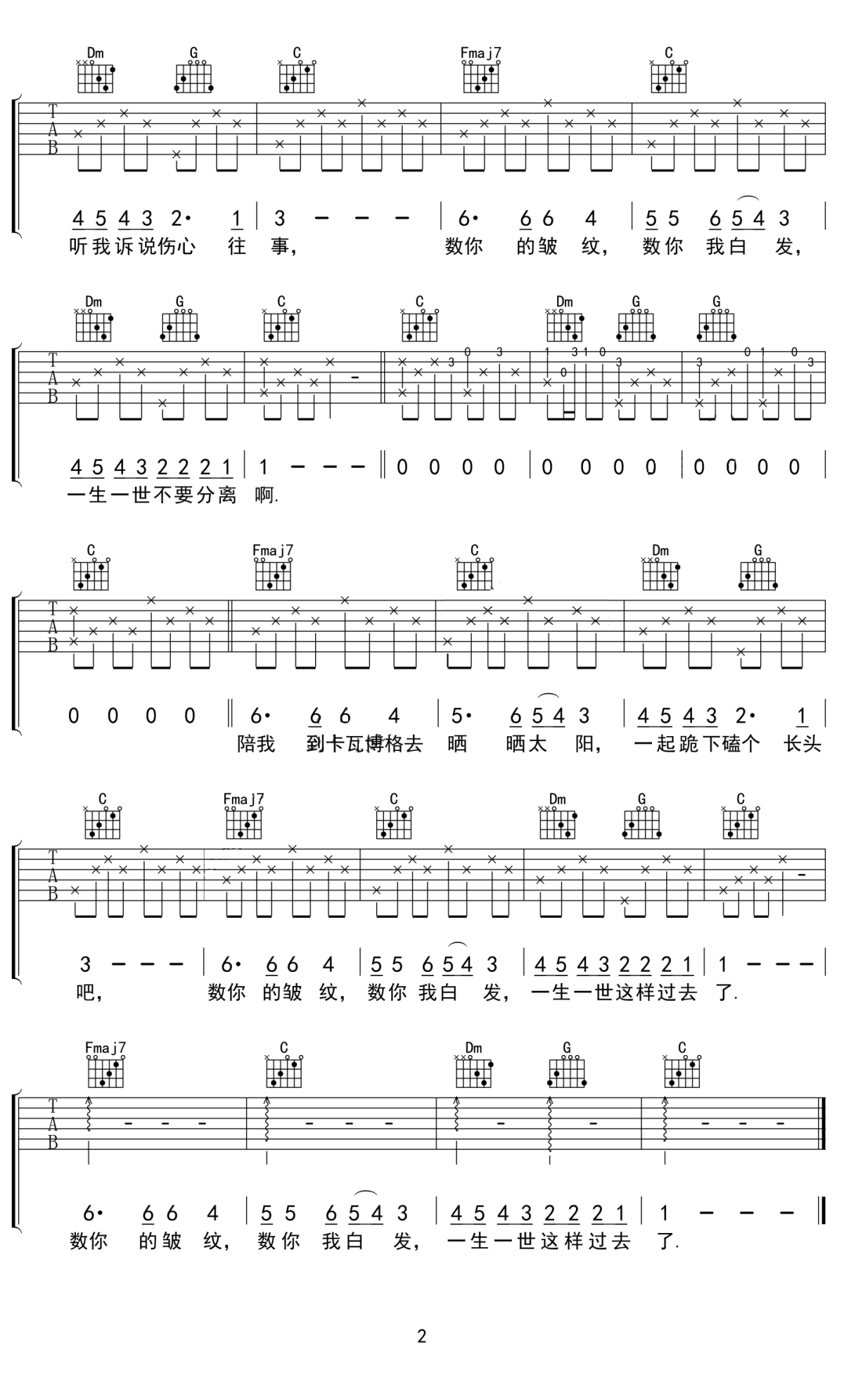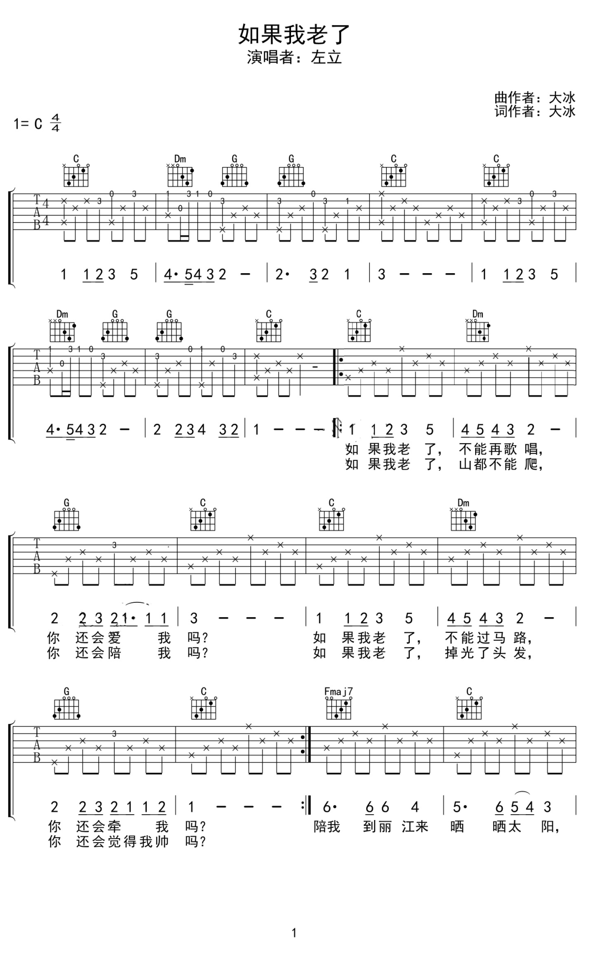 曲谱介绍: 左立/大冰《如果我老了》吉他弹唱谱,采用C调指法编配原版,共有2张高清图谱,免翻页排版设计。