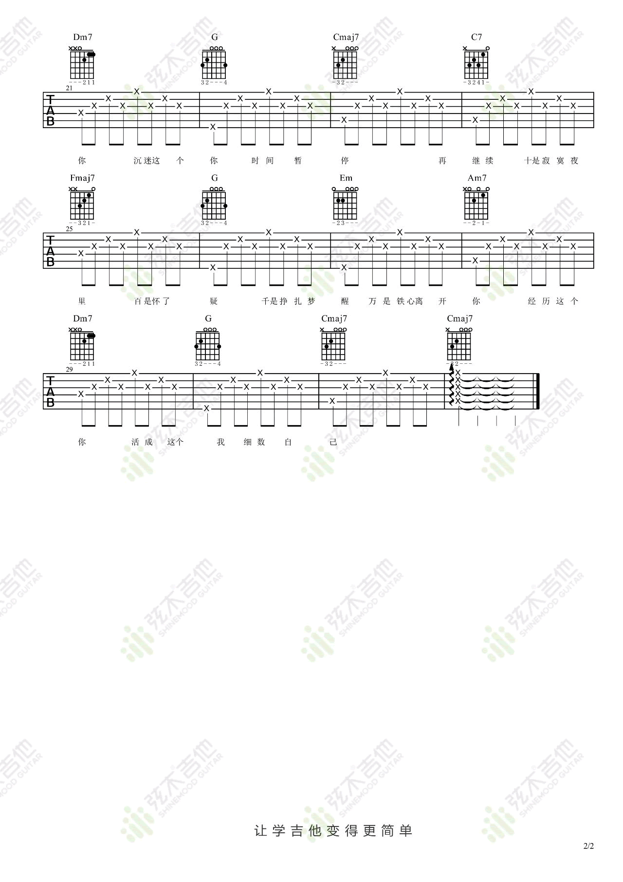曲谱介绍: 杨丞琳《年轮说》吉他弹唱谱,采用C调指法编配,共有2张高清图谱,免翻页排版设计。