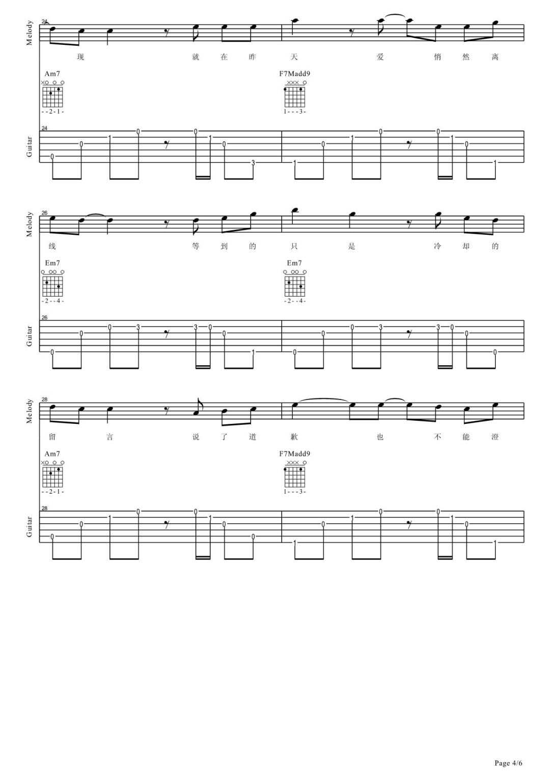 吉他弹唱C调来源:良好市民273 浏览2024-01-26 22:09发布图谱共6页