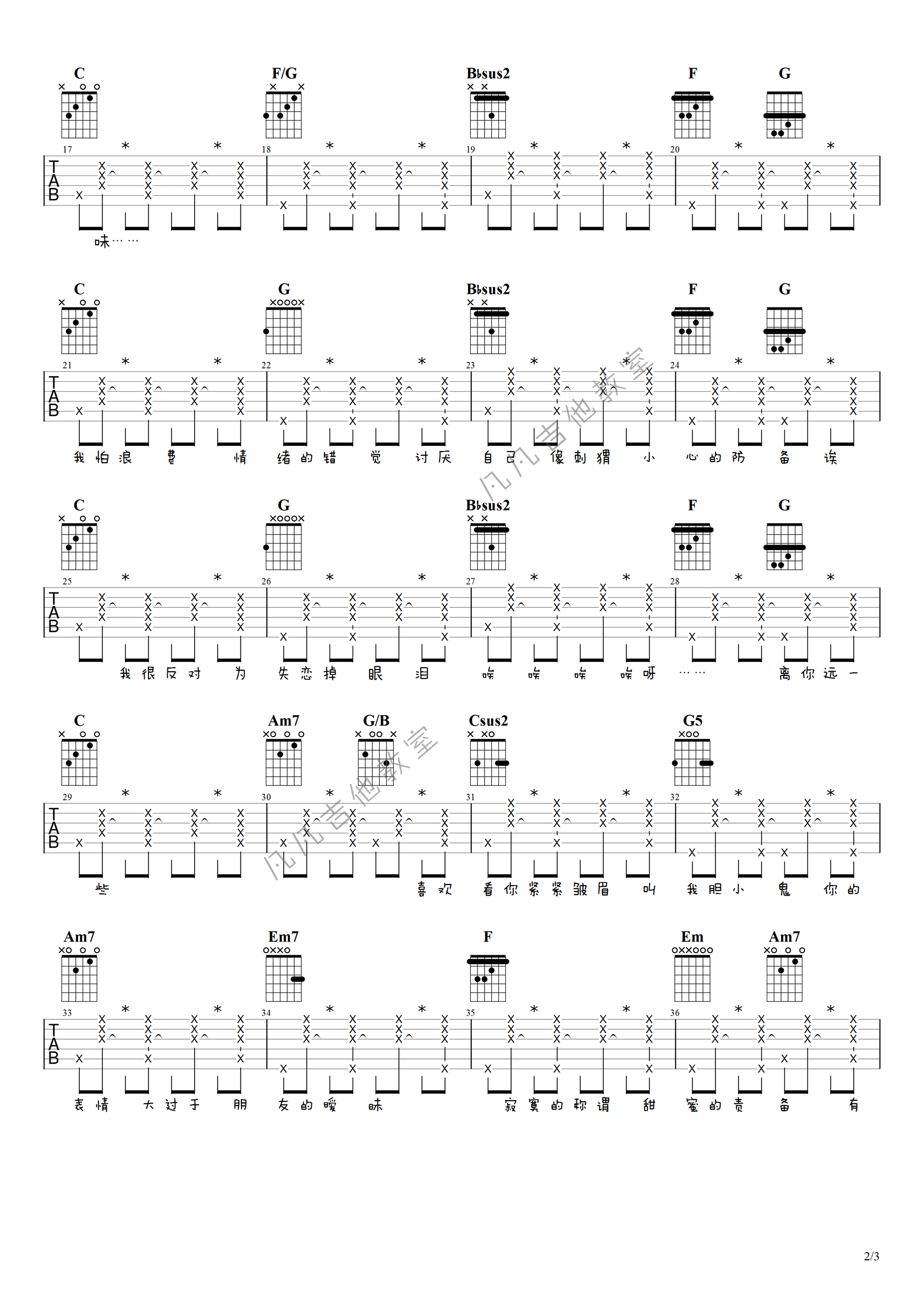 曲谱介绍: 梁咏琪《胆小鬼》吉他弹唱谱,采用C调指法编配,共有3张高清图谱。