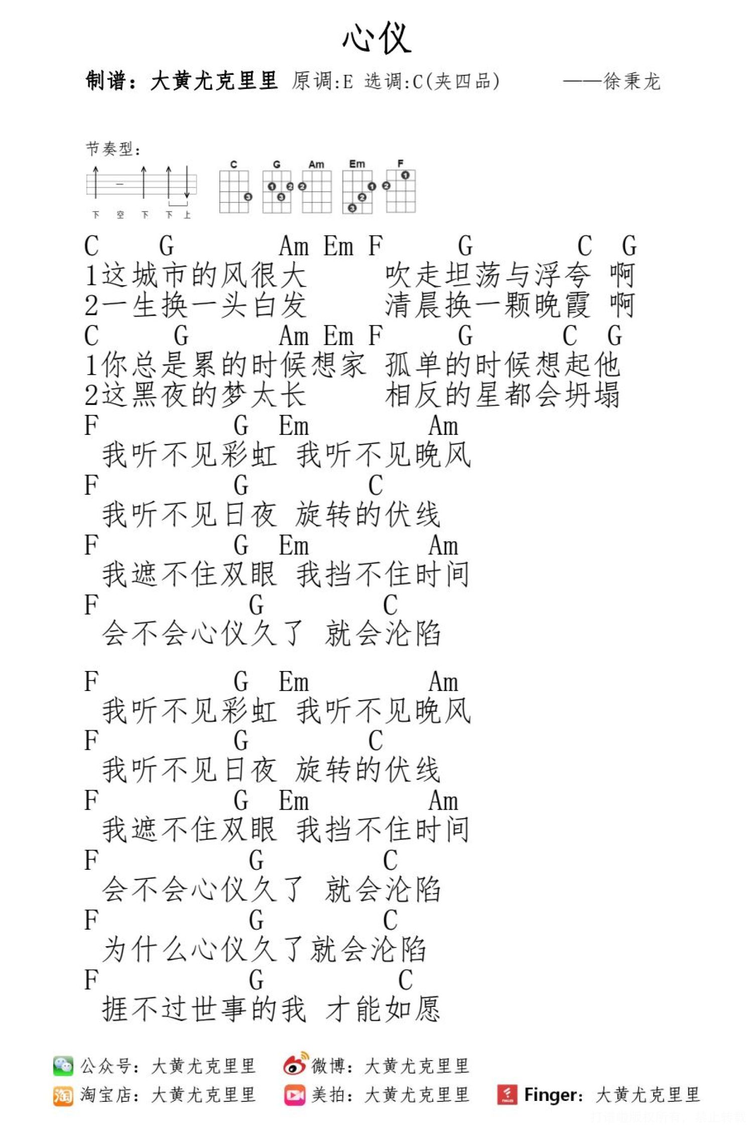 心仪尤克里里谱 - 徐秉龙