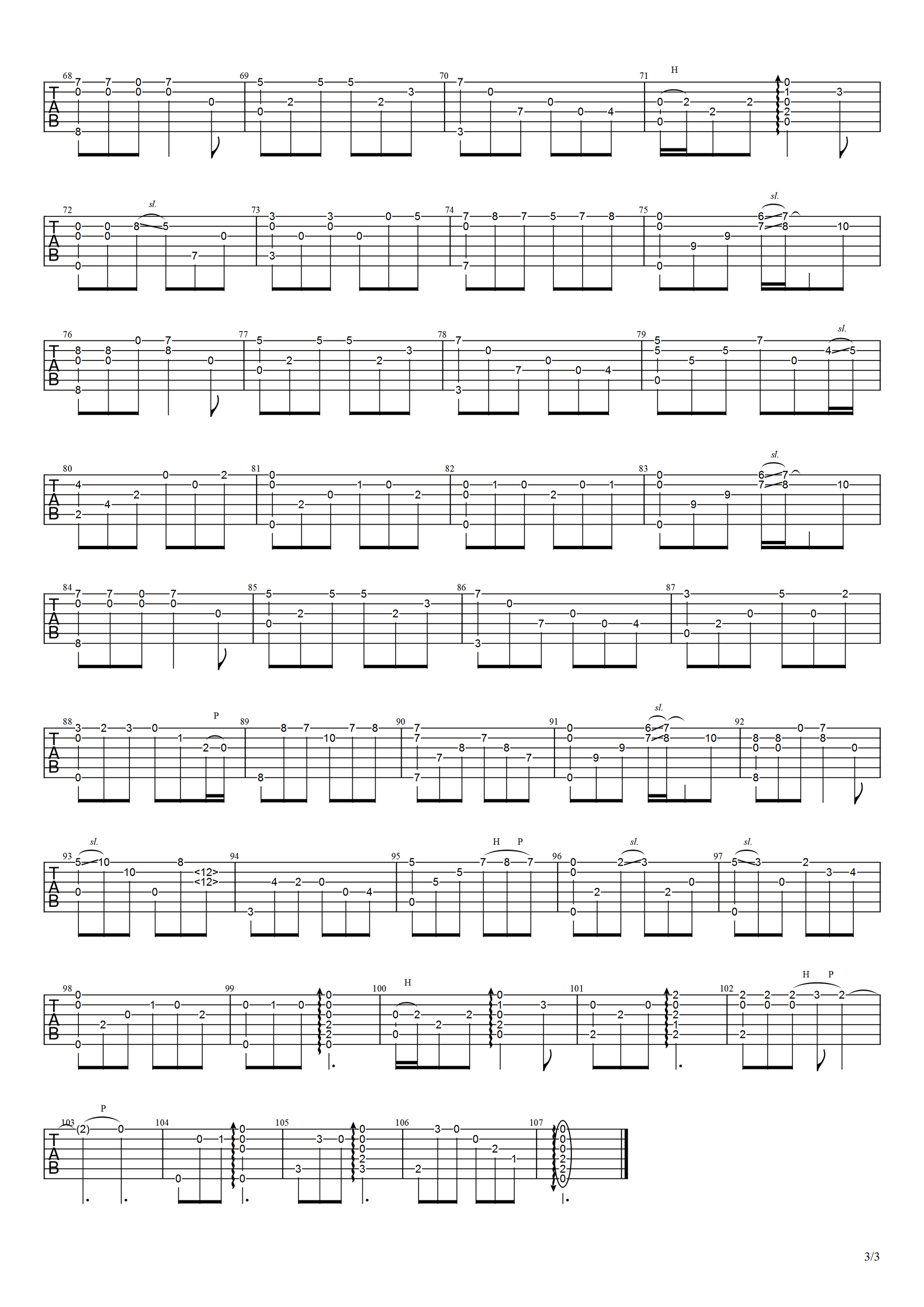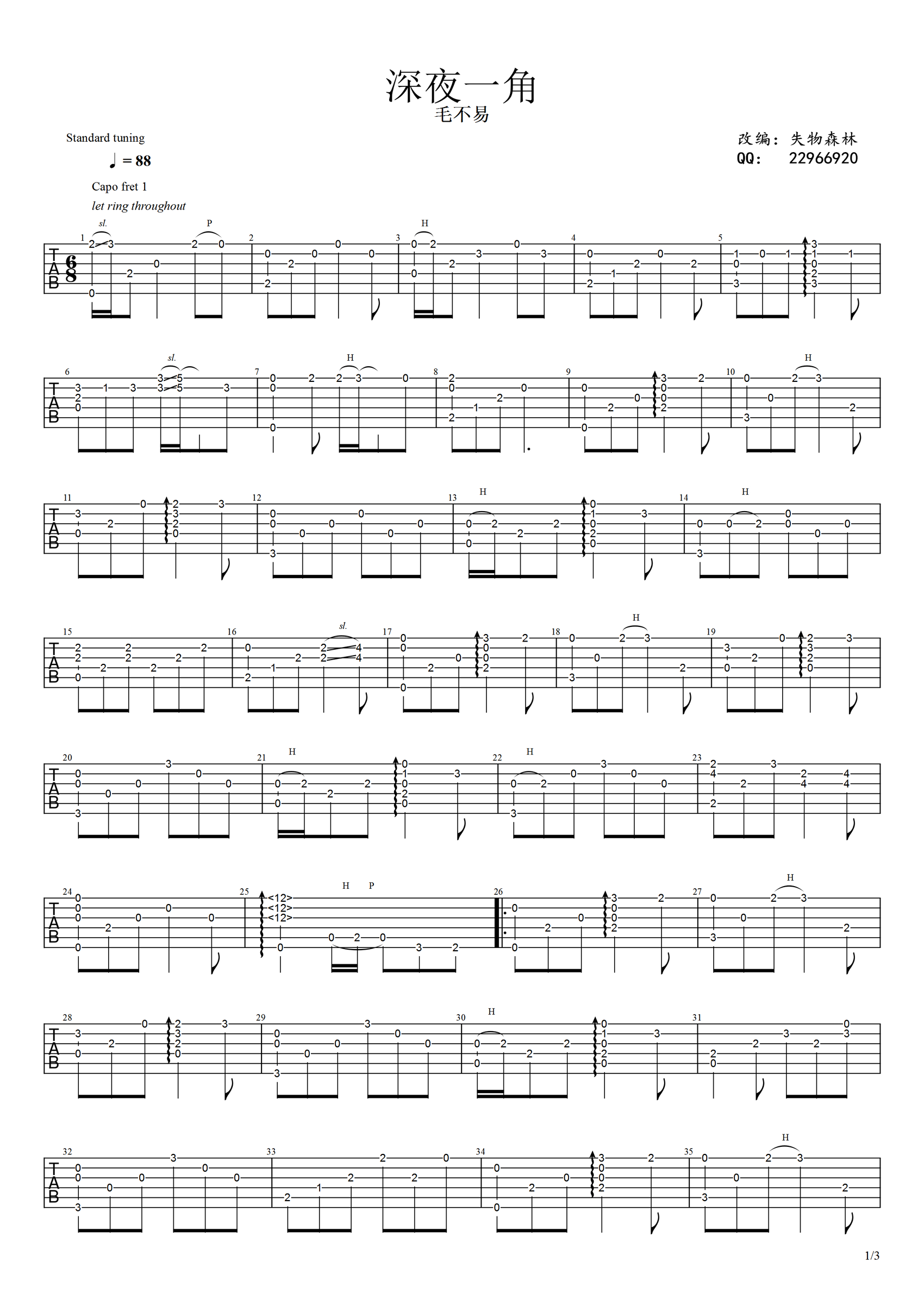 曲谱介绍: 毛不易《深夜一角》吉他独奏谱,共有3张高清图谱。