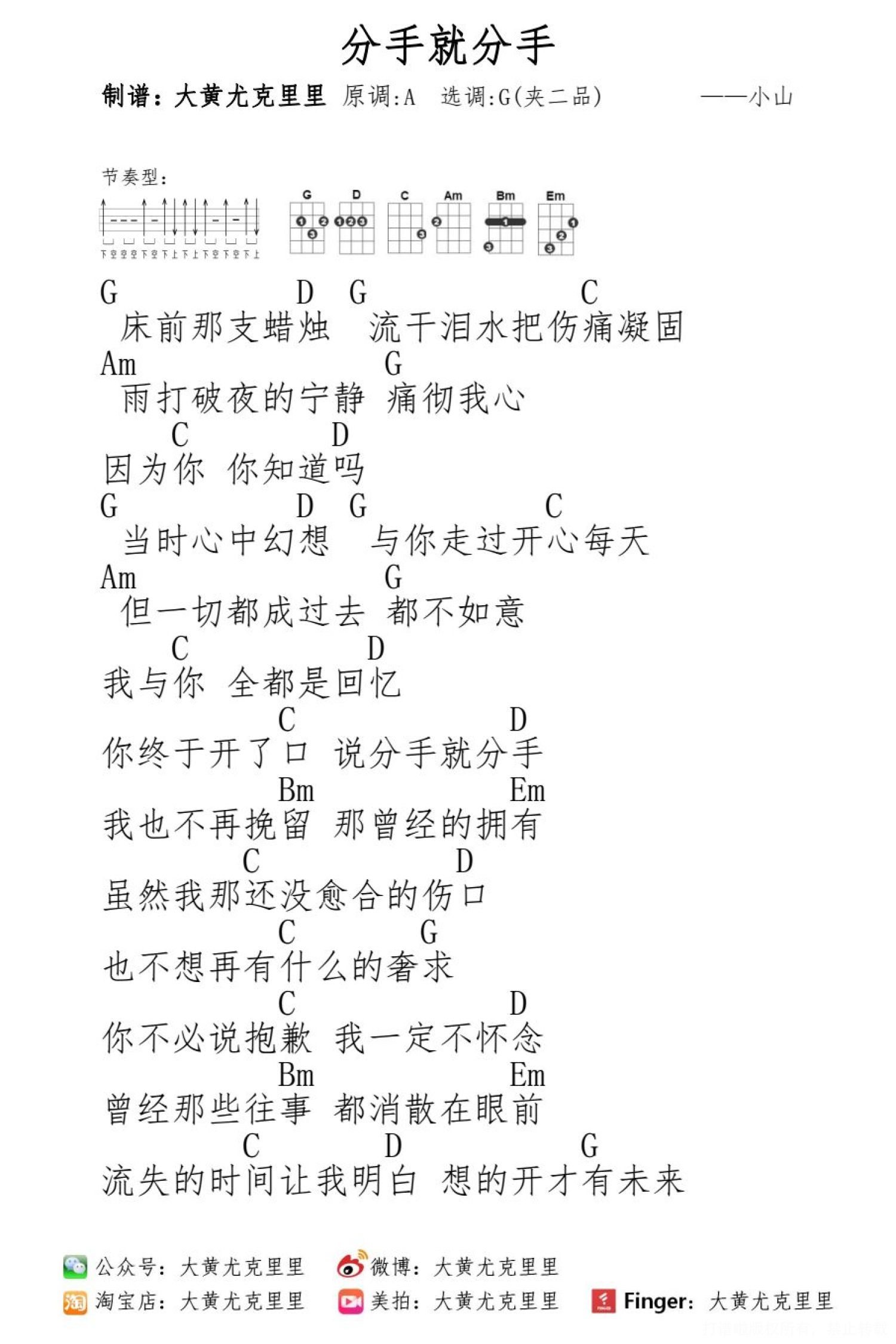 分手就分手尤克里里谱 - 小山