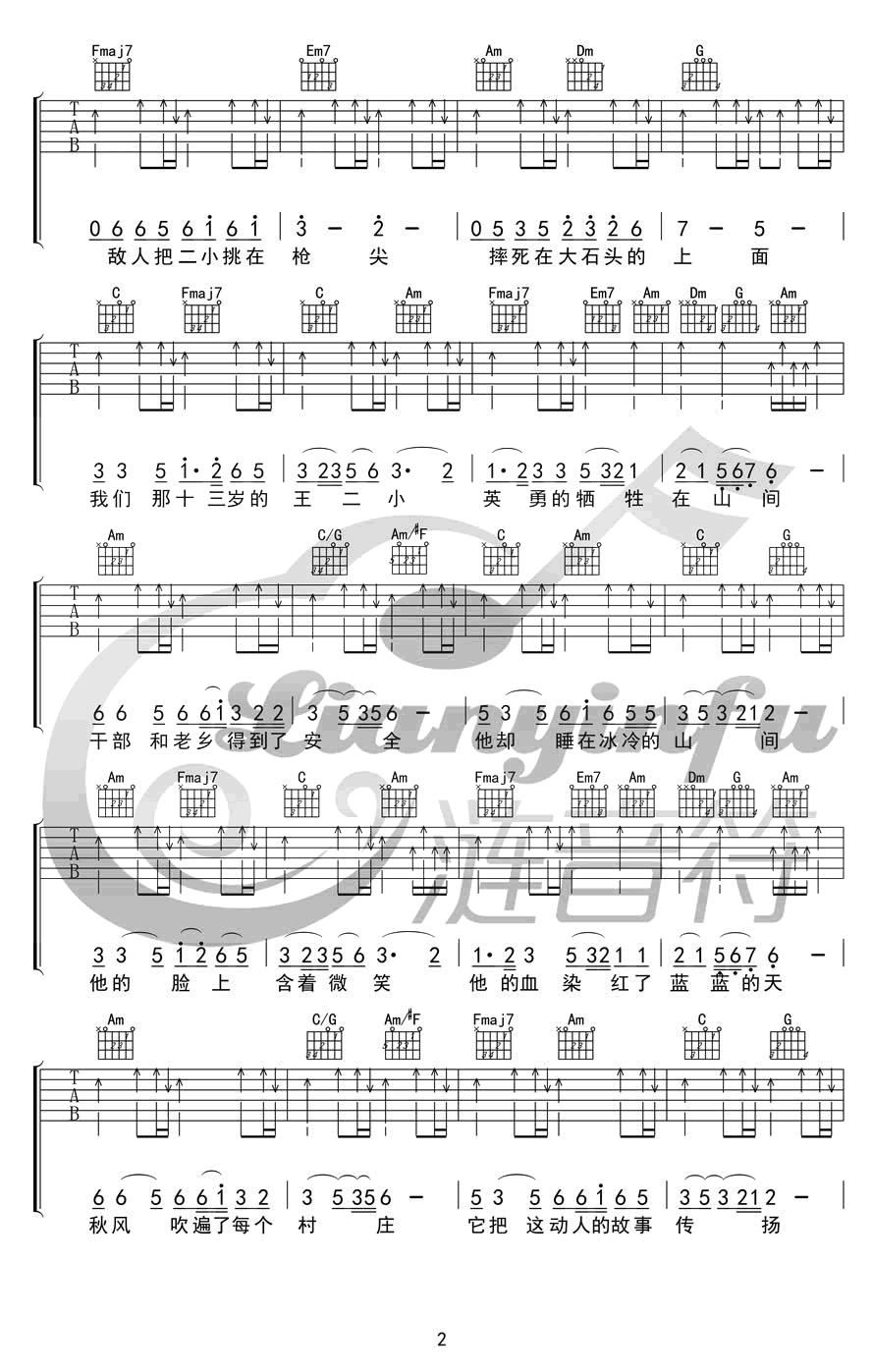 当前位置:琴谱网>吉他弹唱>歌唱二小放牛郎