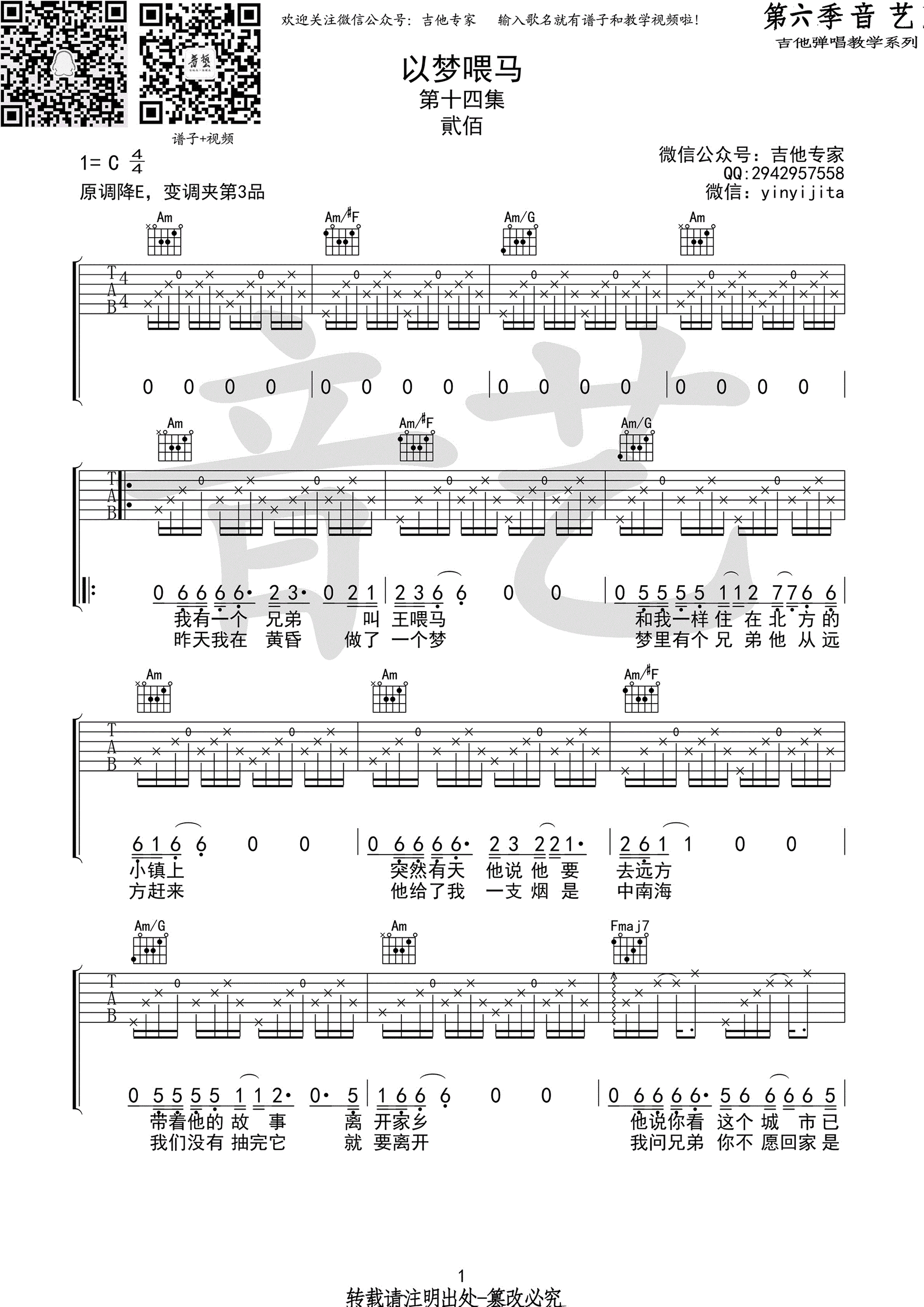 当前位置:琴谱网>吉他弹唱>以梦喂马