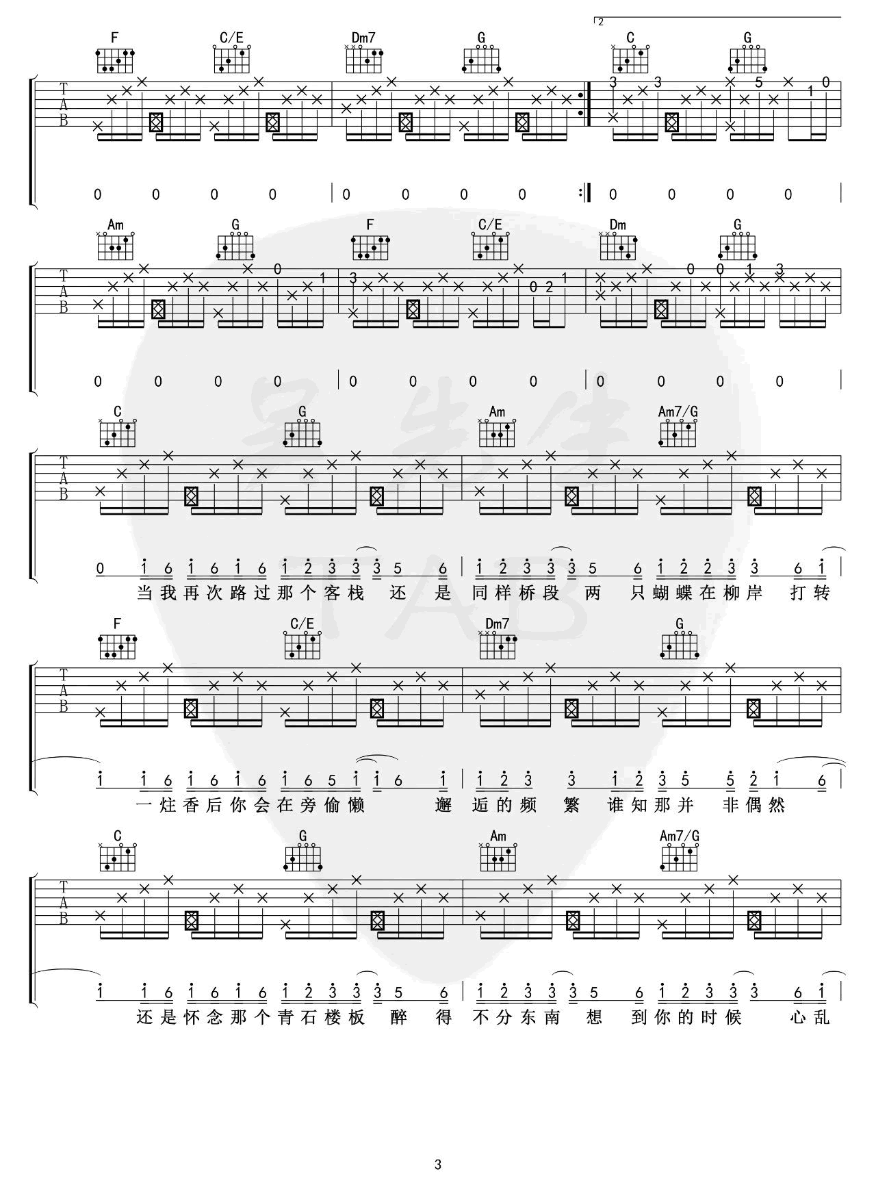 曲谱介绍: 西二《京华旧梦》吉他弹唱谱,采用C调指法编配原版,共有4张高清图谱。