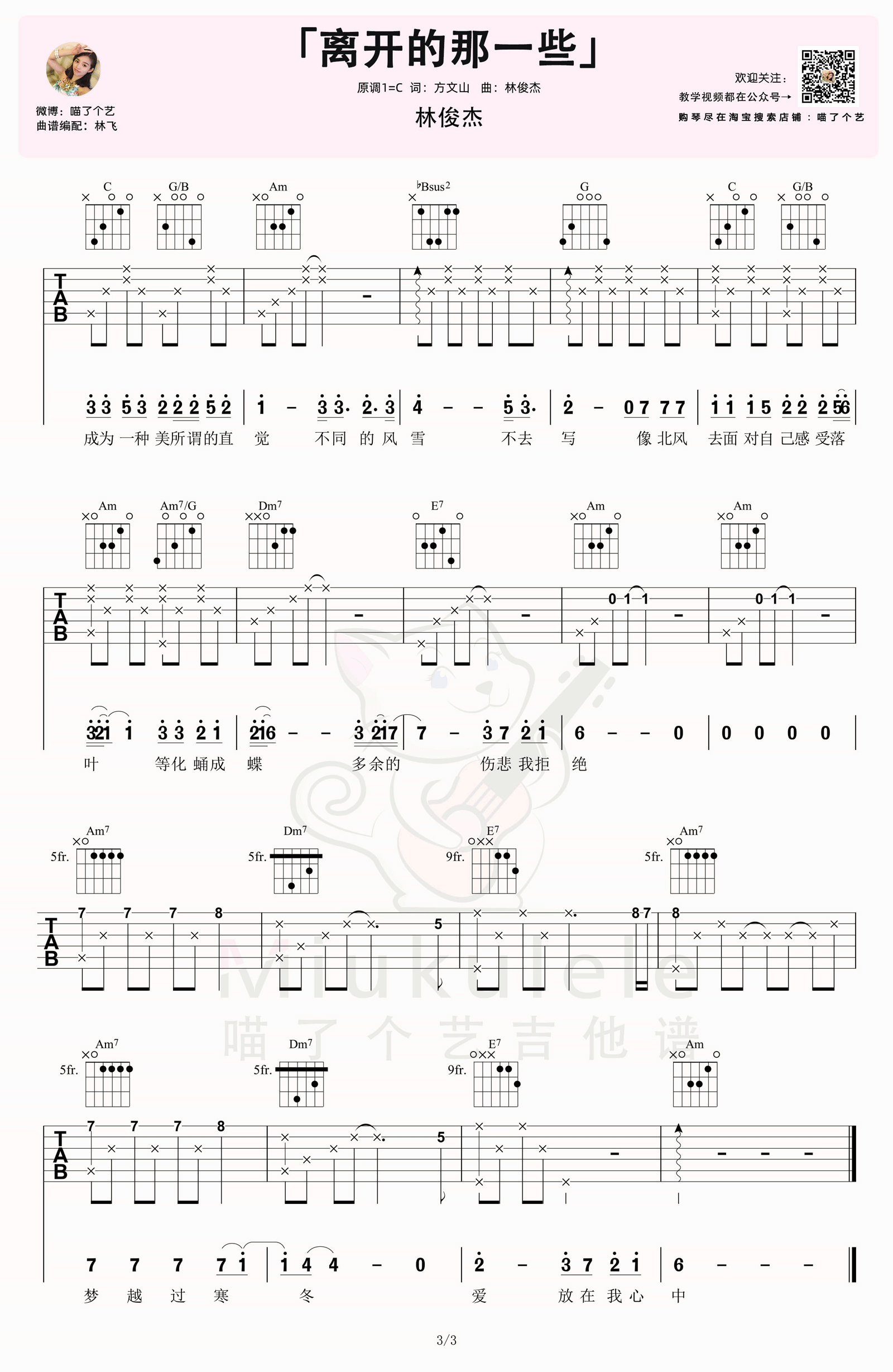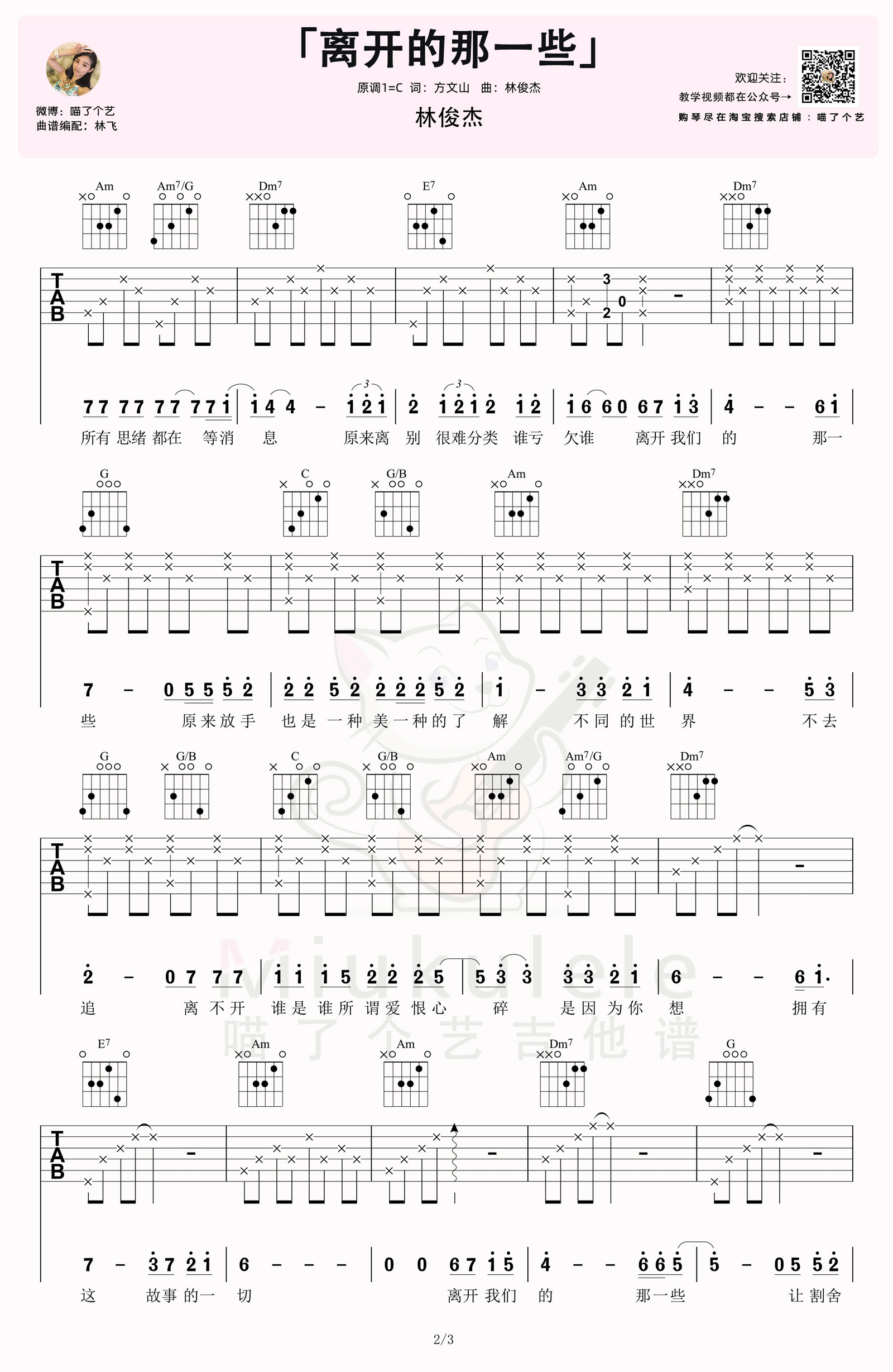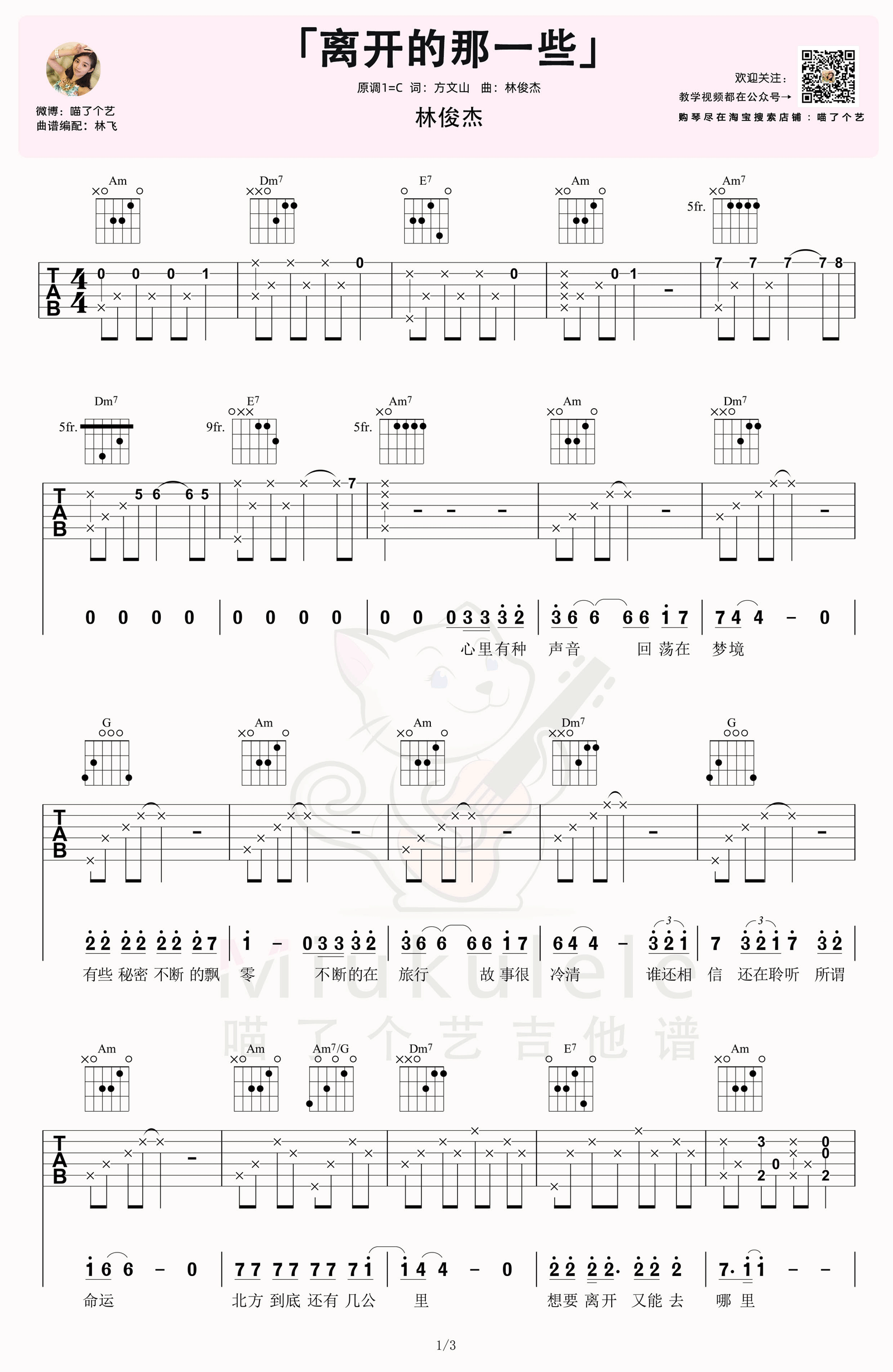 曲谱介绍: 林俊杰《离开的那一些》吉他弹唱谱,采用C调指法编配原版,共有3张高清图谱。
