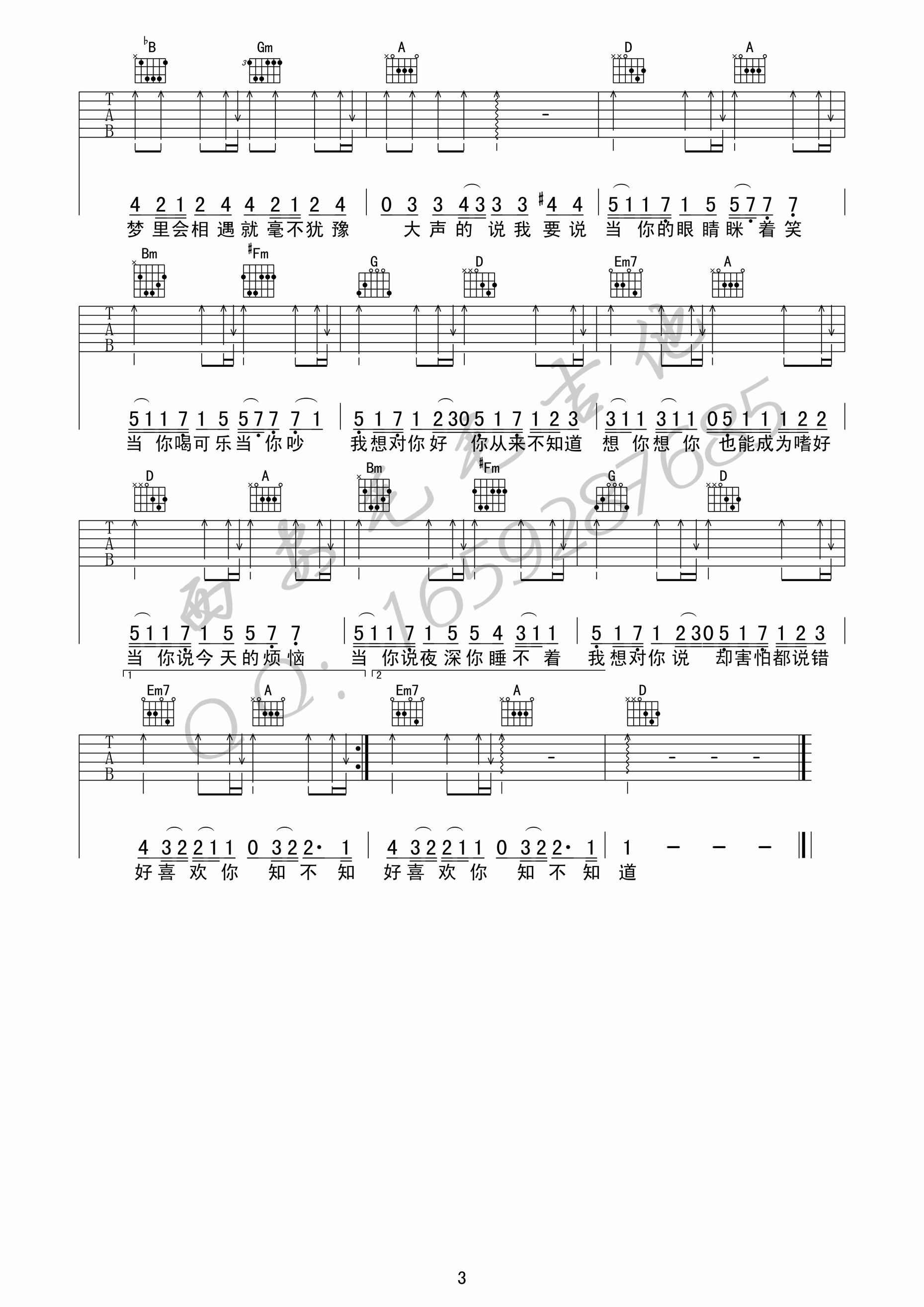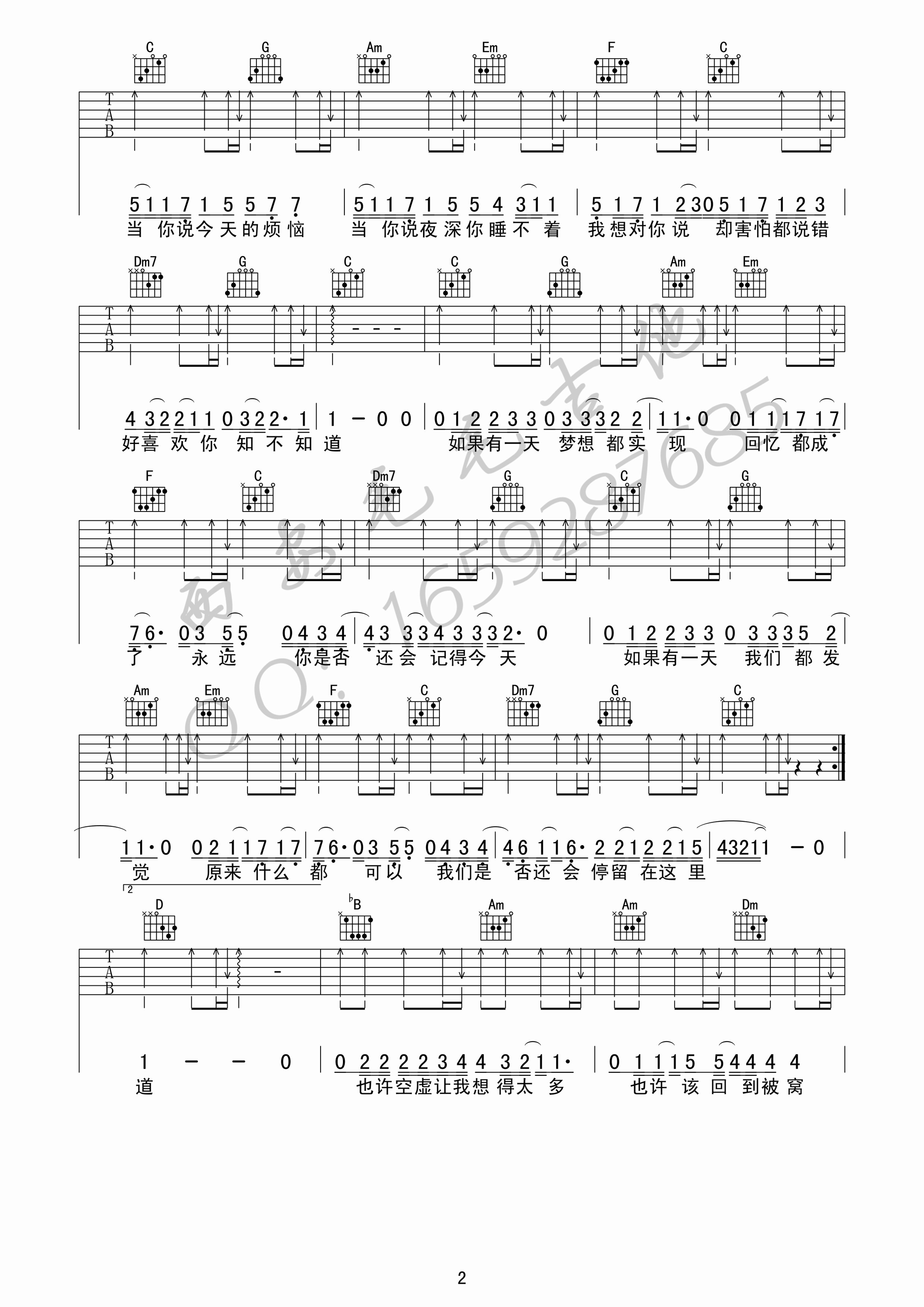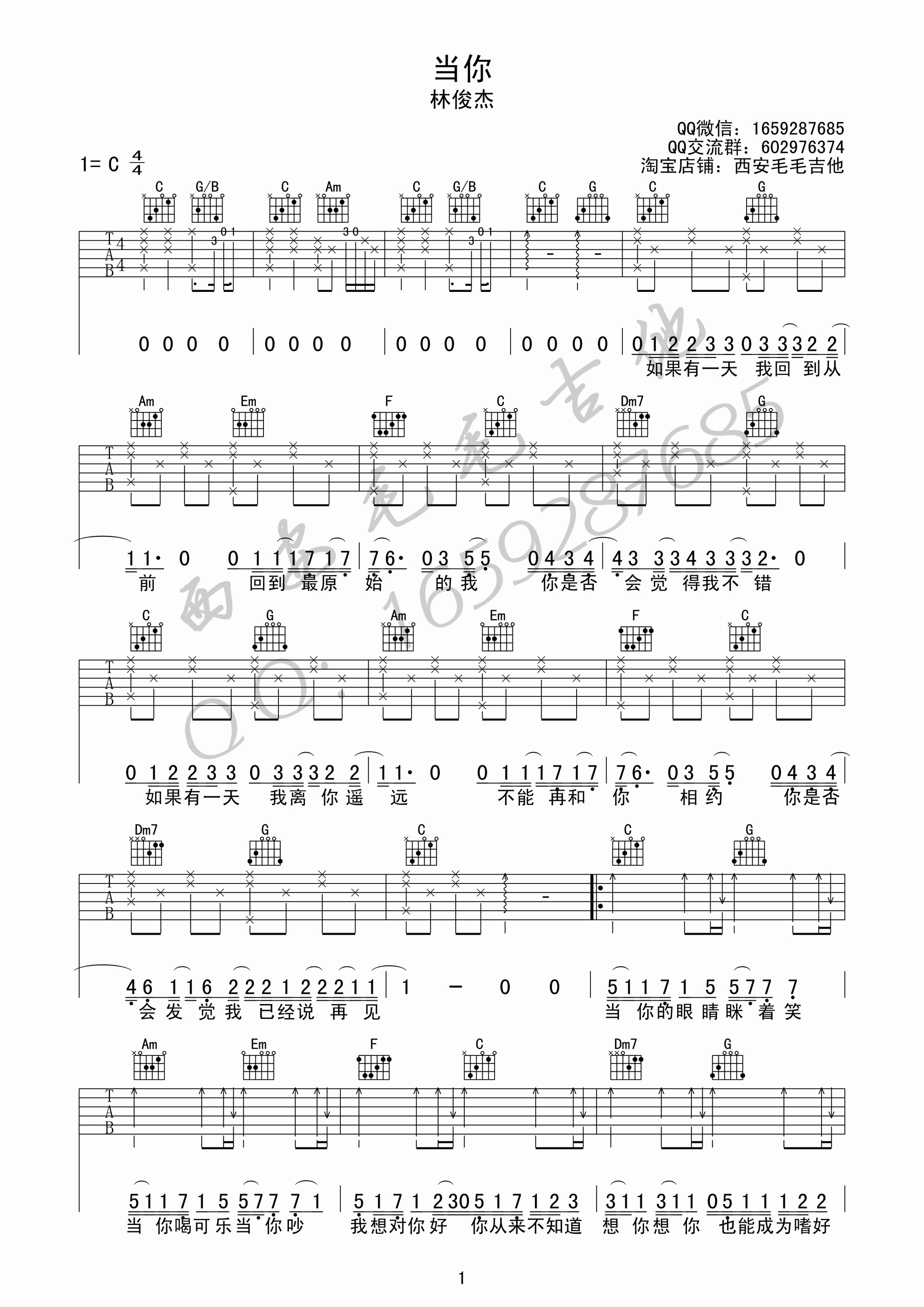 曲谱介绍: 林俊杰《当你》吉他弹唱谱,采用C调指法编配原版,共有3张高清图谱。
