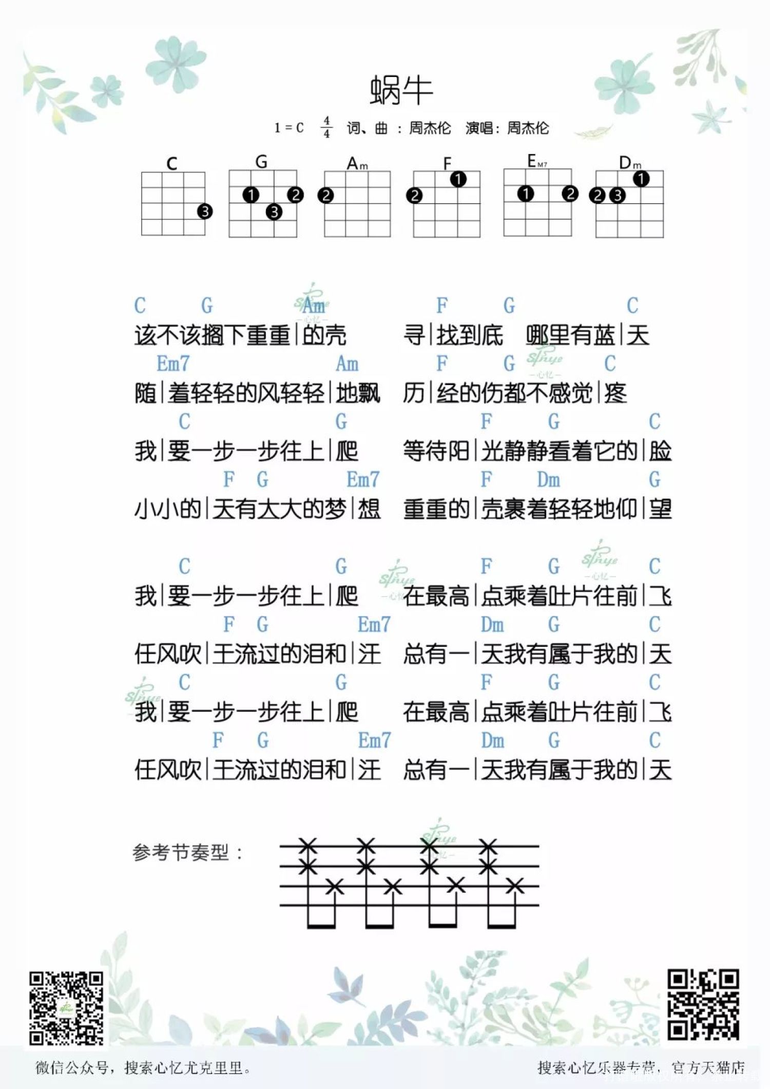 曲谱介绍: 《蜗牛》尤克里里单音指弹谱   蜗牛 尤克里里弹唱谱