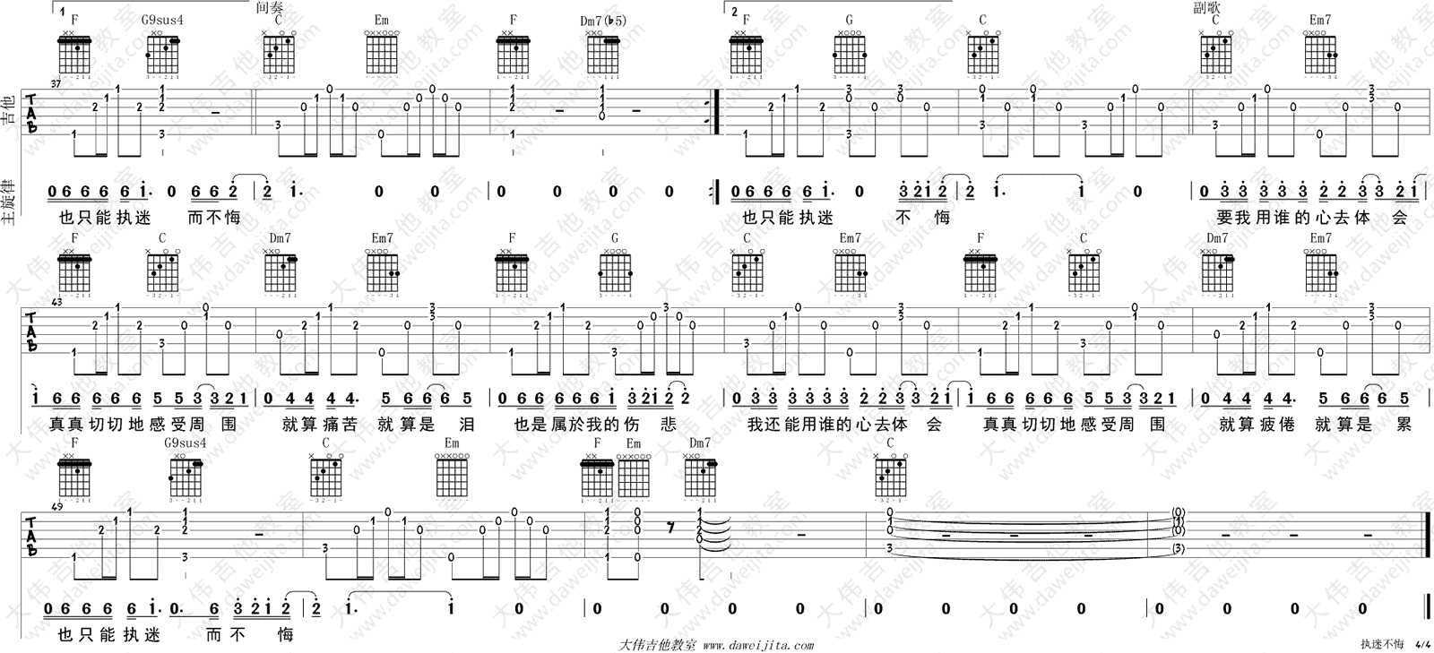 当前位置:琴谱网>吉他弹唱>执迷不悔