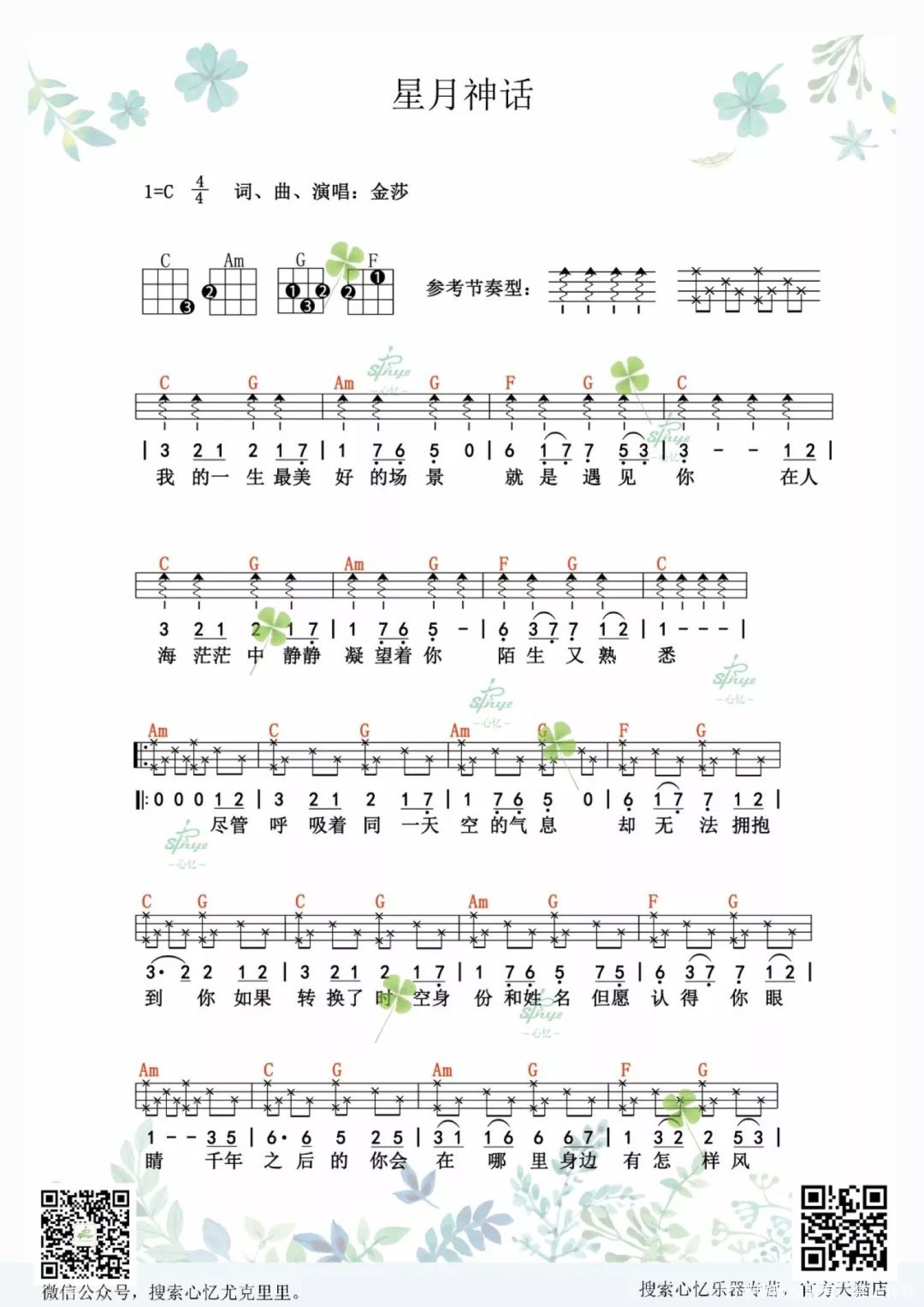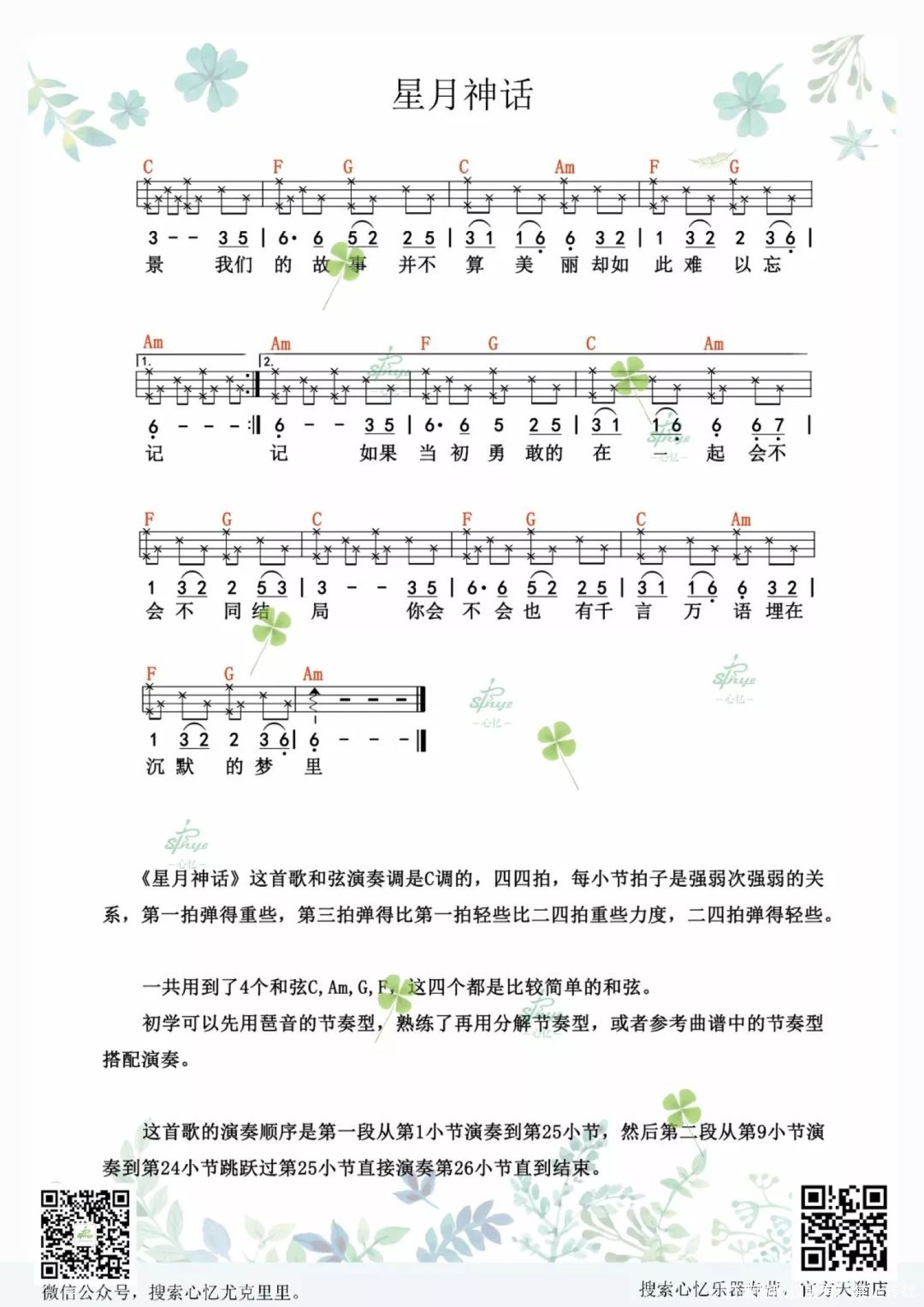 曲谱介绍: 《星月神话》尤克里里弹唱谱