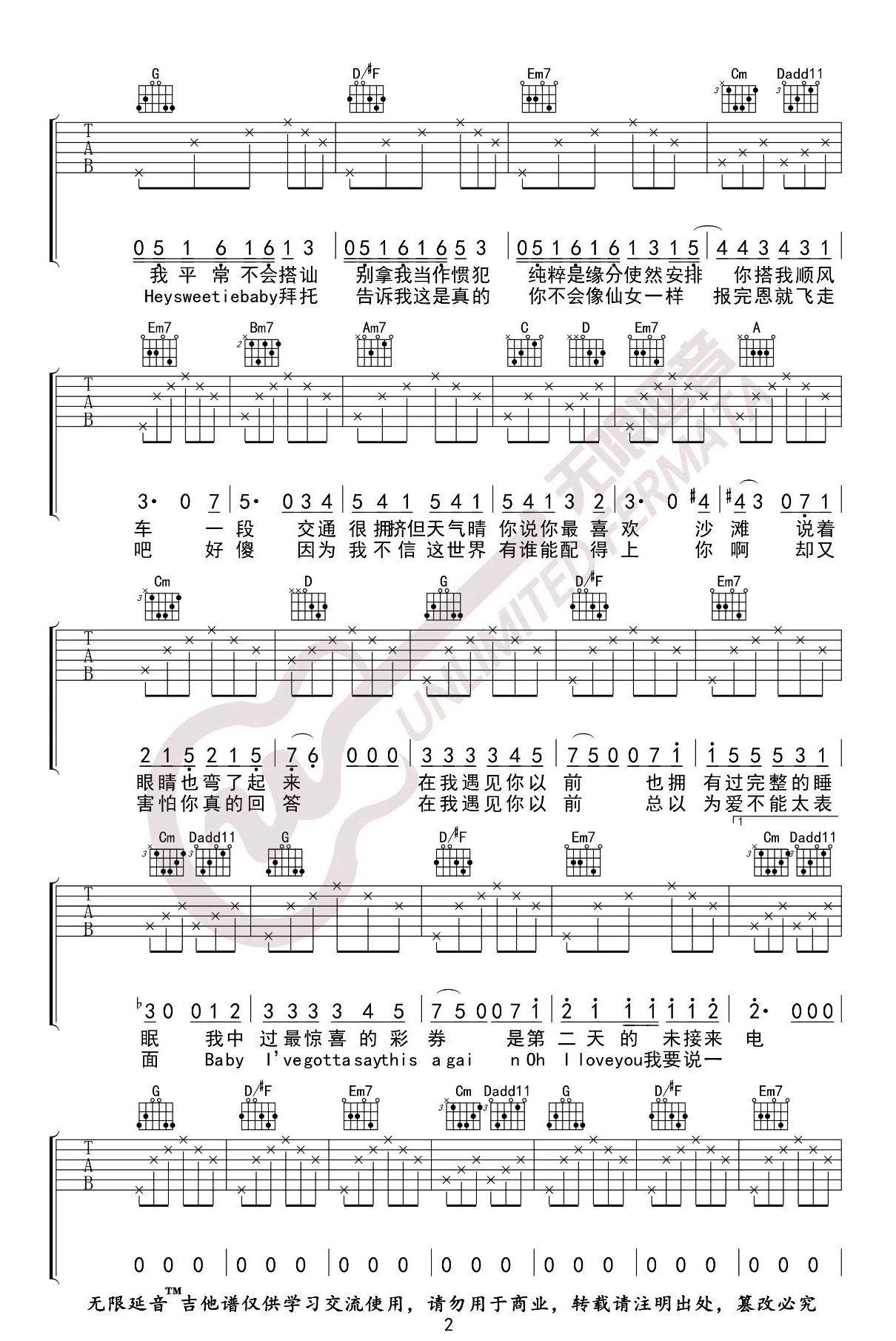 曲谱介绍: 薛之谦《彩券》吉他弹唱谱,采用G调指法编配原版,共有3张高清图谱。