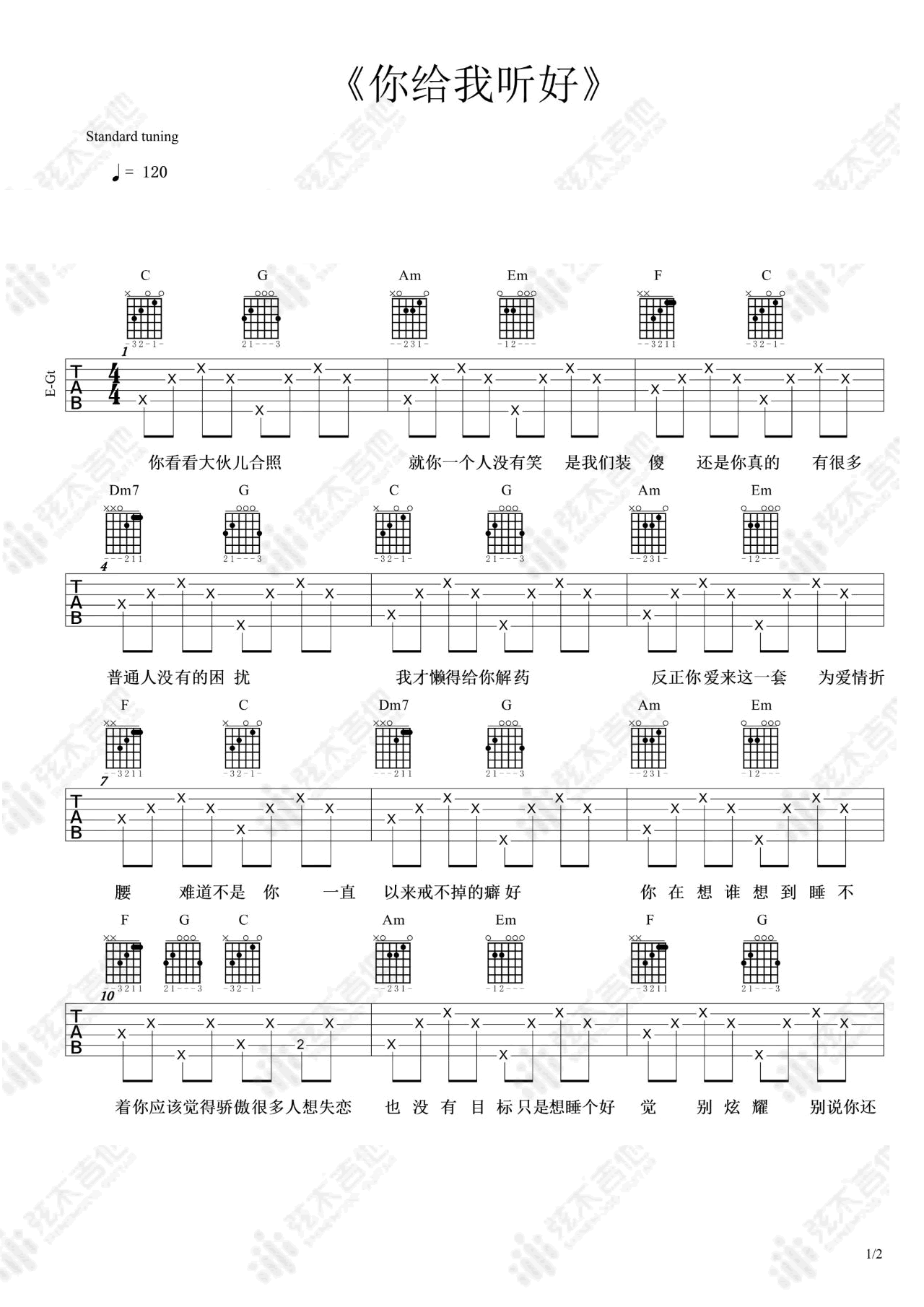 当前位置:琴谱网>吉他弹唱>你给我听好