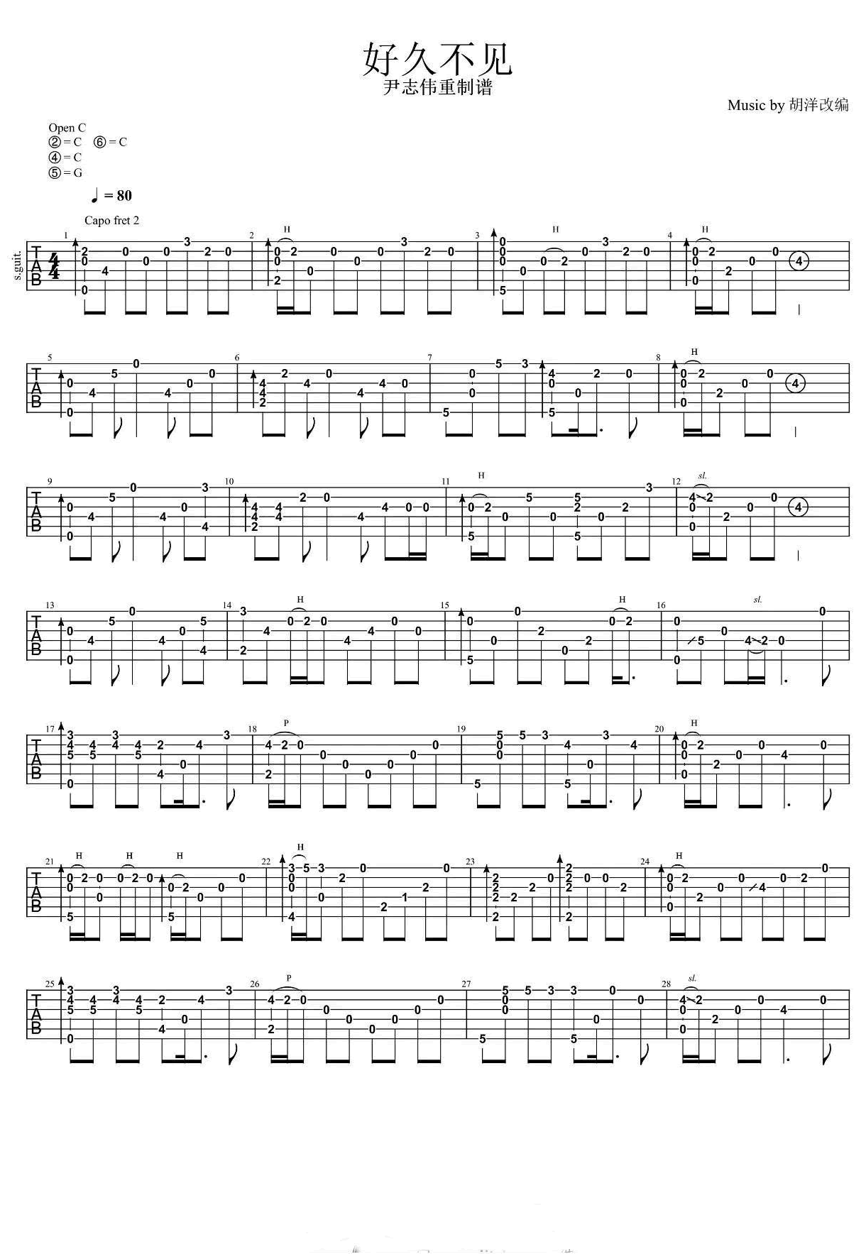 曲谱介绍: 陈奕迅《好久不见》吉他独奏谱,共有2张高清图谱,免翻页排版设计。