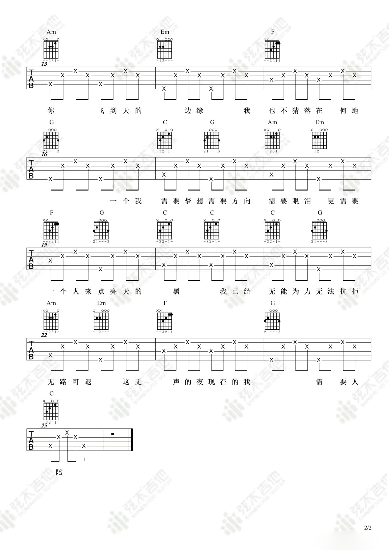 当前位置:琴谱网>吉他弹唱>需要人陪