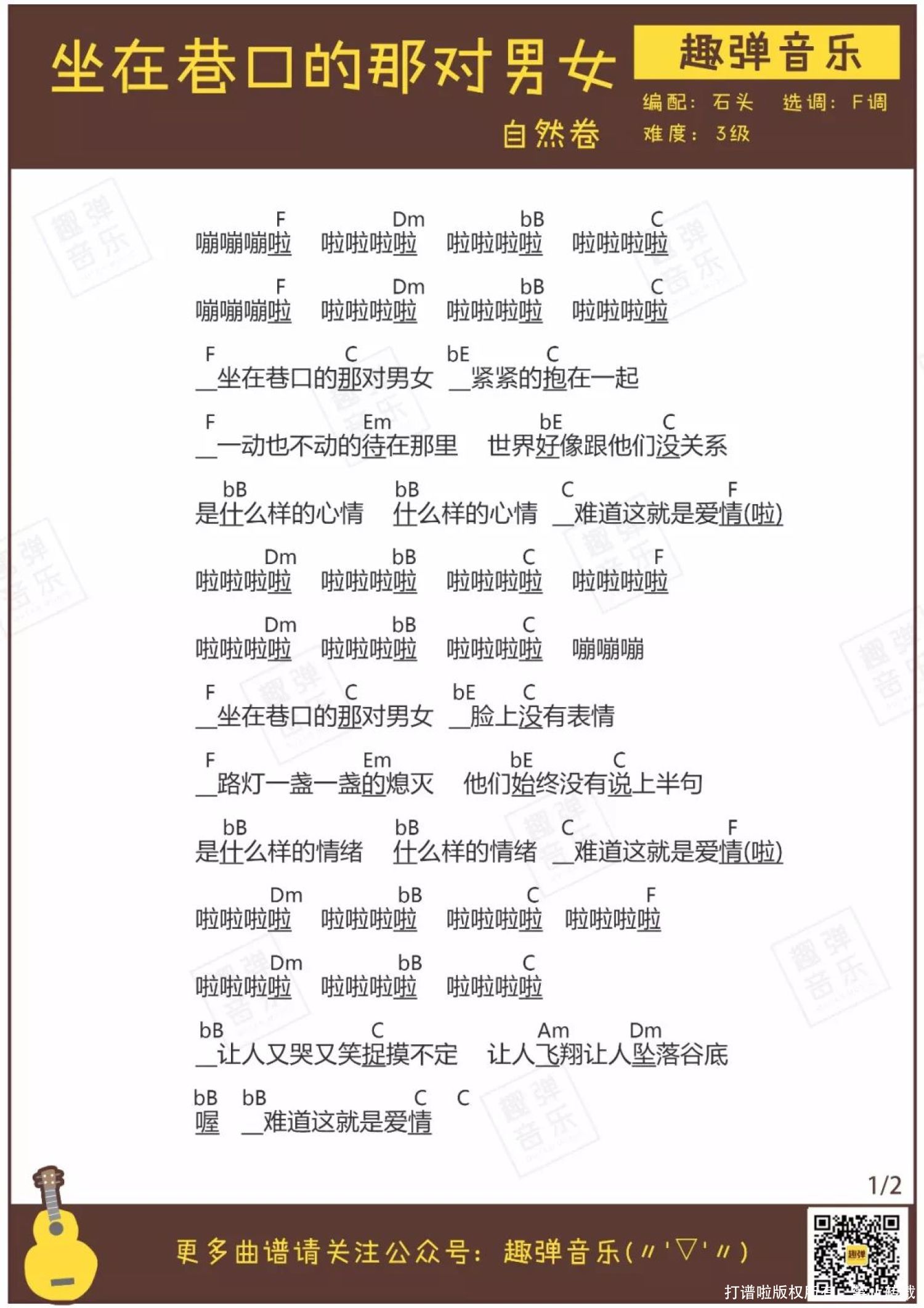 坐在巷口的那对男女尤克里里谱 - 自然卷
