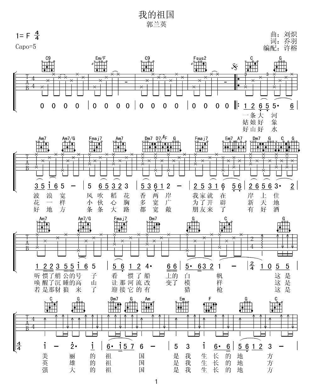 我的祖国吉他谱 - 郭兰英 - C调吉他弹唱谱