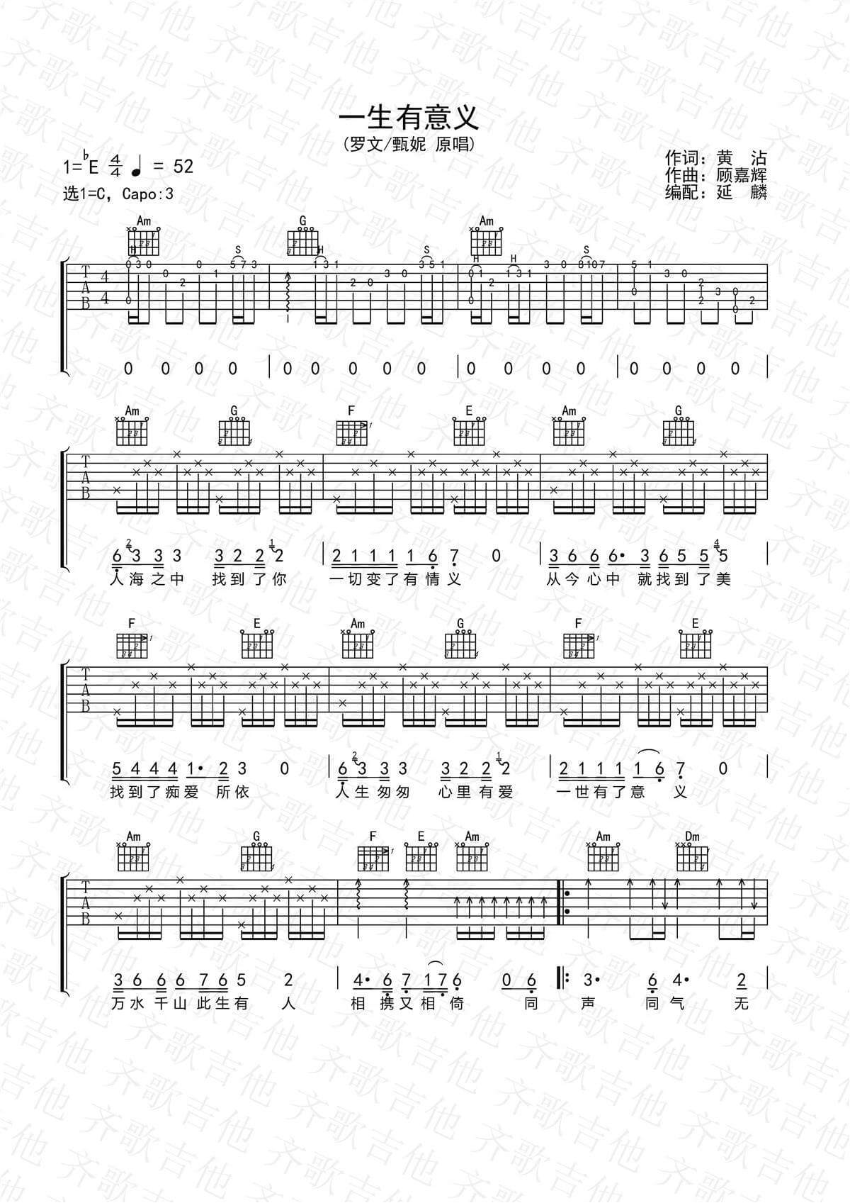 当前位置:琴谱网>吉他弹唱>一生有意义