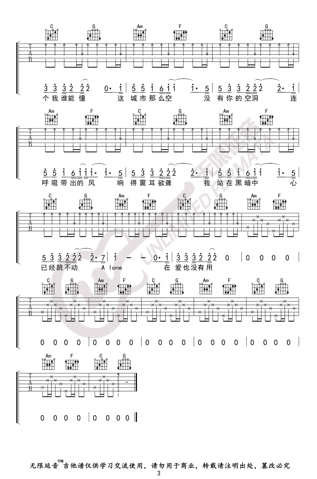 曲谱介绍: 杨坤《空城》吉他弹唱谱,采用C调指法编配原版,共有3张高清图谱。