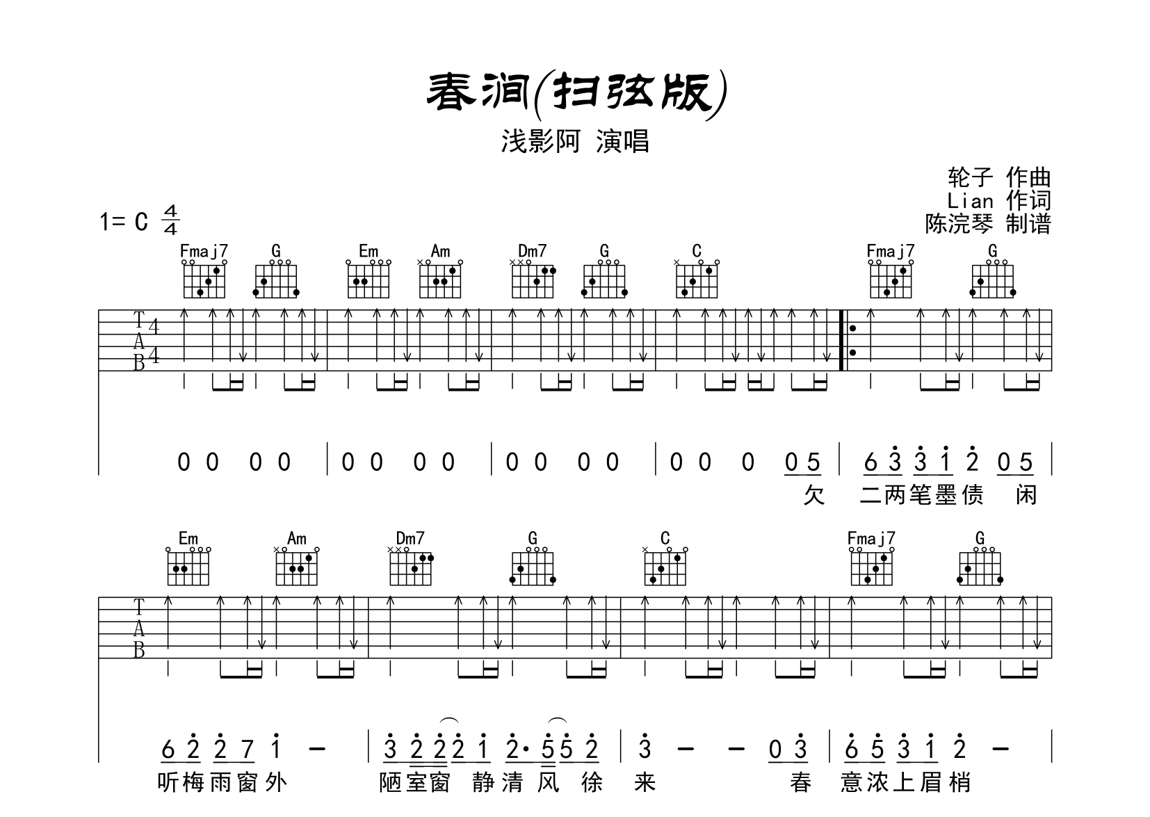 春涧吉他谱 - 浅影阿 - C调吉他弹唱谱