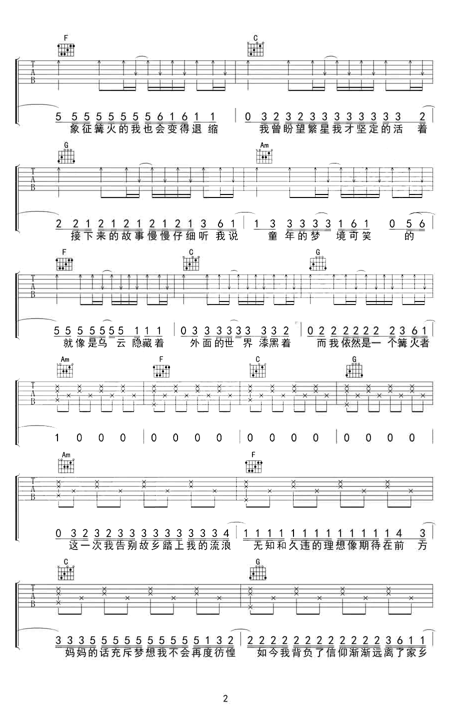 曲谱介绍: 《妈妈的话》吉他弹唱谱,原调升F调,变调夹六品,选用C调指法,完整编配共三张图片六线谱。世间的温柔,记得要给自己的妈妈留一份。