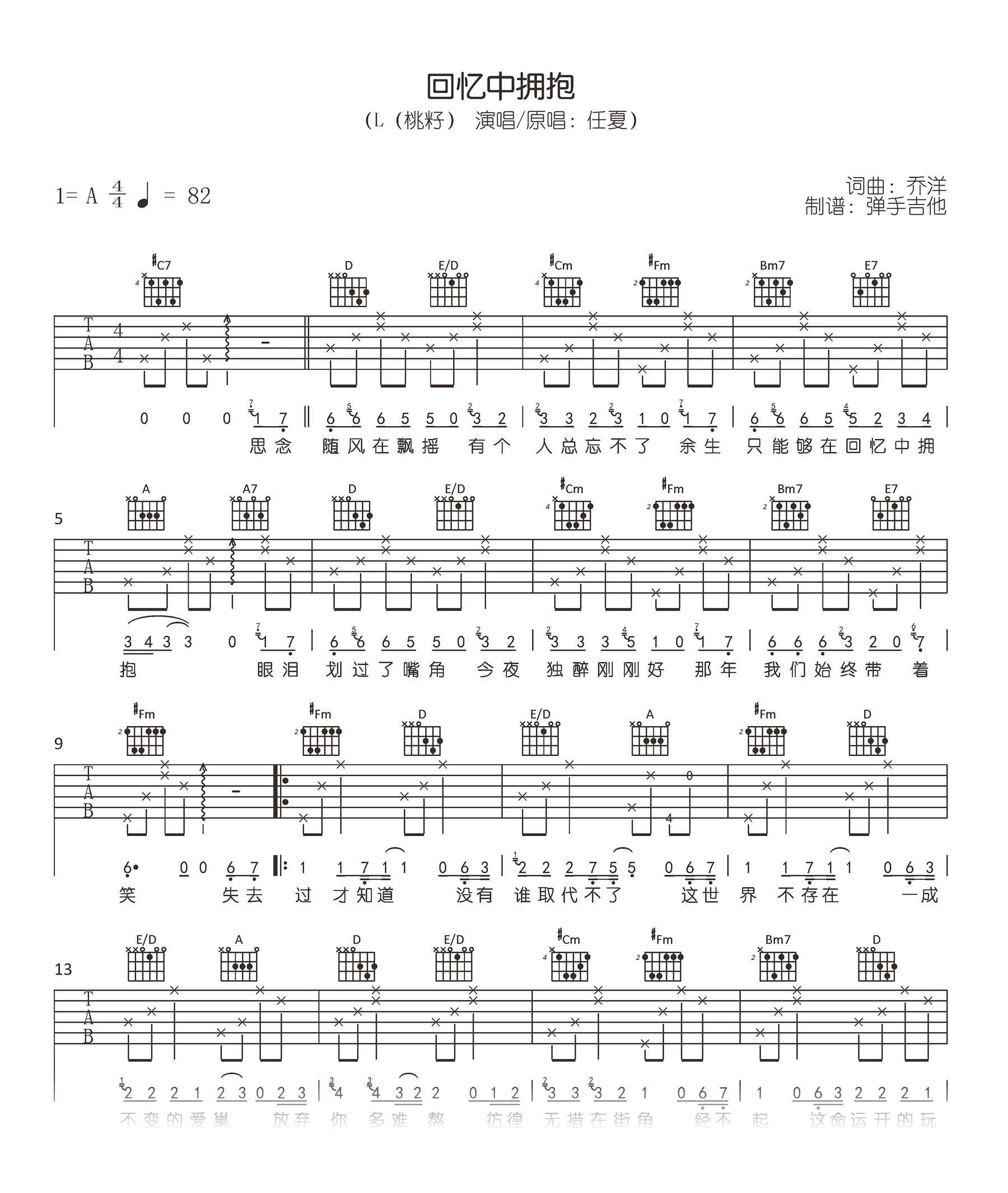 回忆中拥抱吉他谱 - L(桃籽) - A调吉他弹唱谱