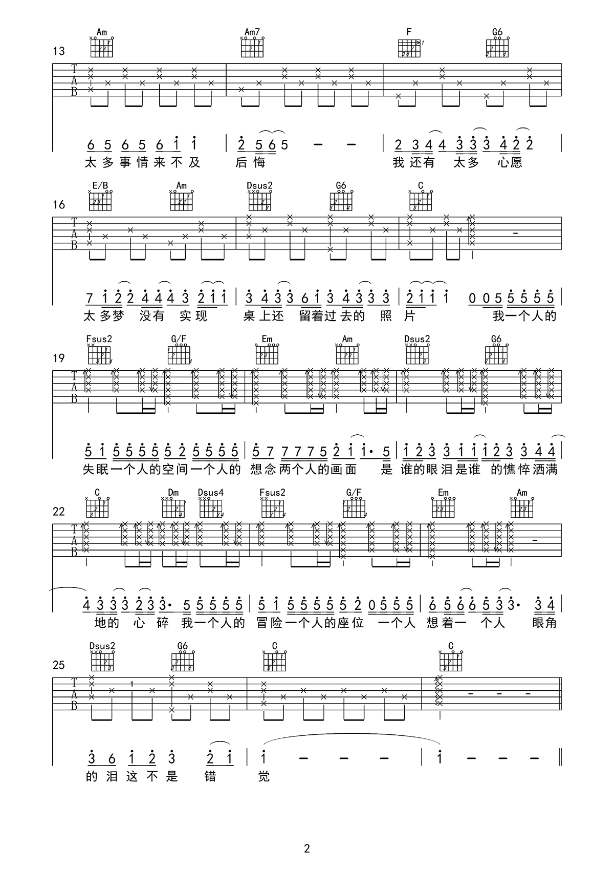 曲谱介绍: 曾沛慈《一个人想着一个人》吉他弹唱谱,采用C调指法编配原版,共有2张高清图谱,免翻页排版设计。