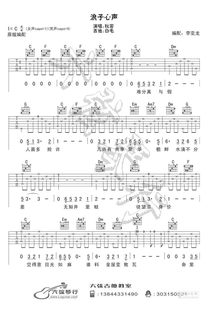 曲谱介绍: 许冠杰《浪子心声》吉他弹唱谱,采用C调指法编配原版,共有3张高清图谱。