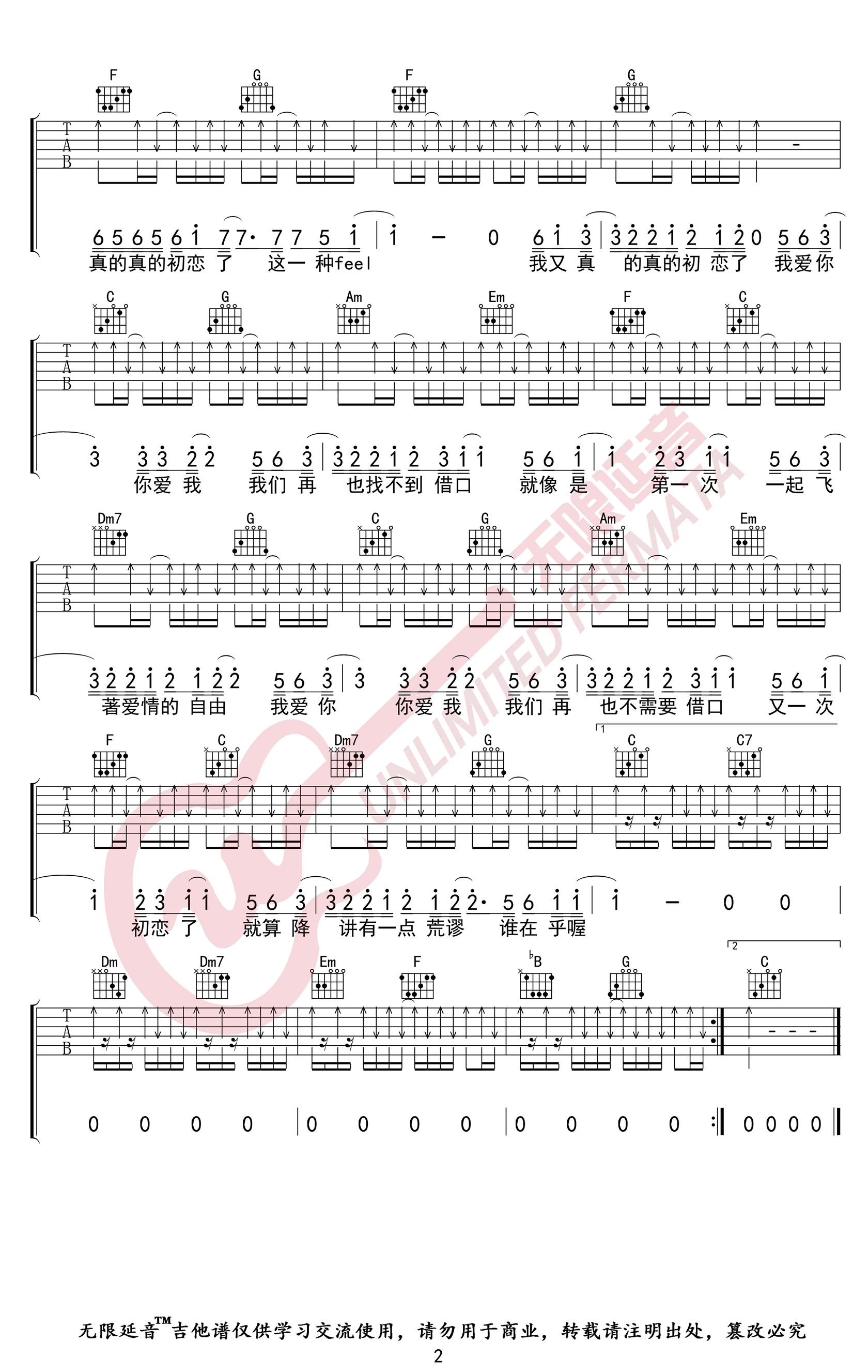 曲谱介绍: 五月天《我又初恋了》吉他弹唱谱,采用C调指法编配,共有2张高清图谱,免翻页排版设计。