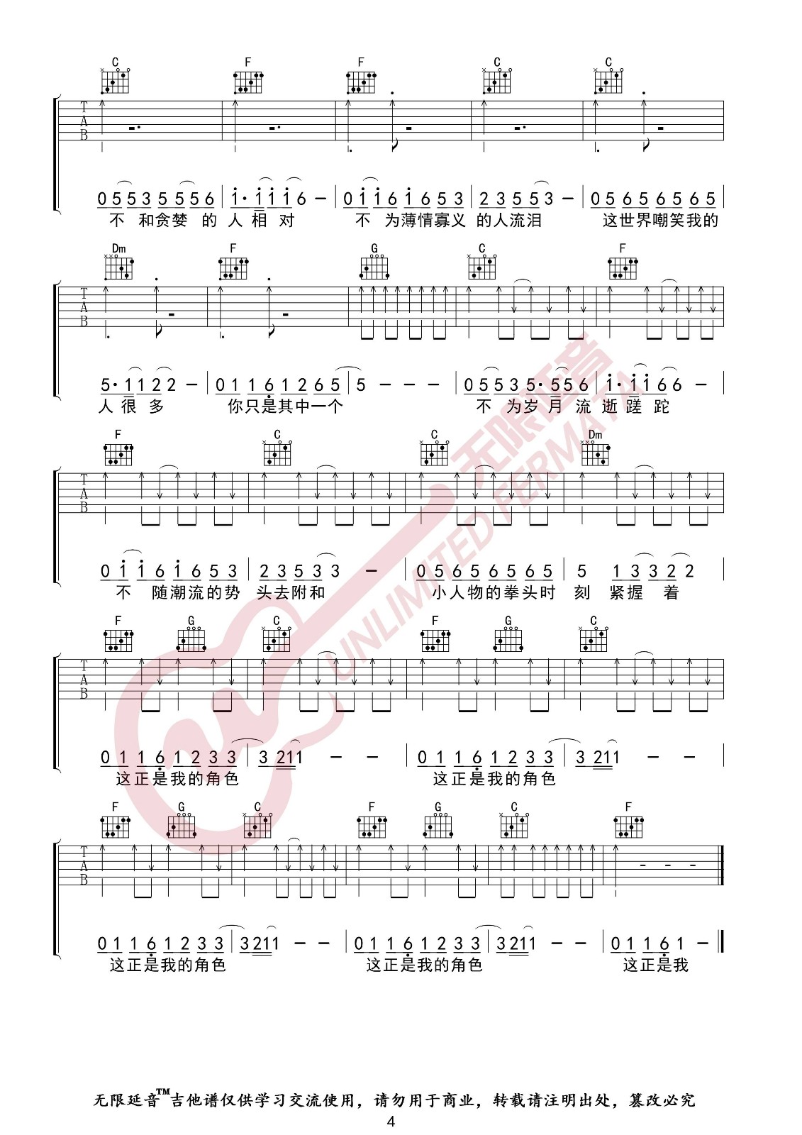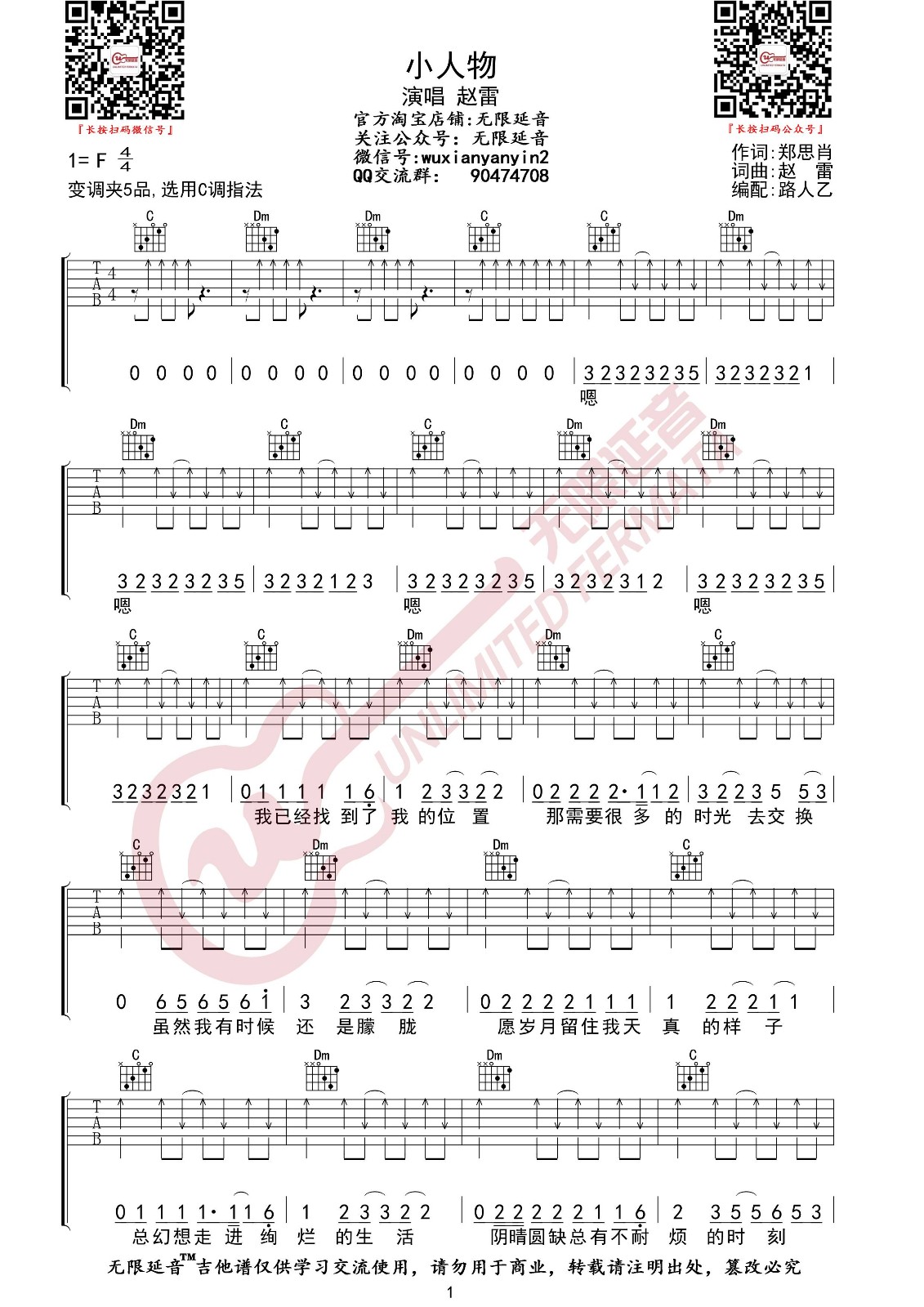 曲谱介绍: 赵雷《小人物》吉他弹唱谱,采用C调指法编配原版,共有4张高清图谱。