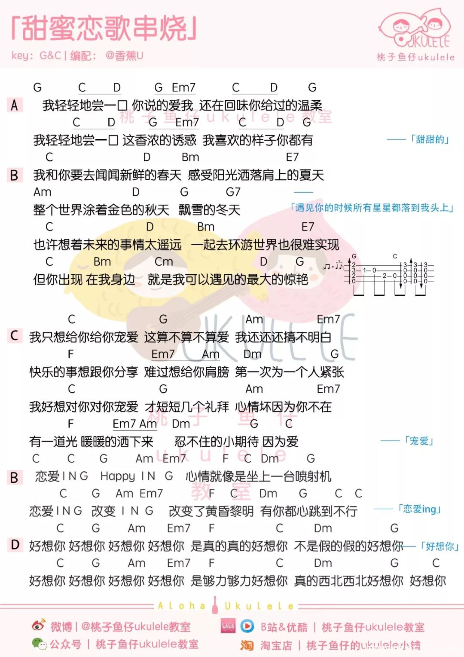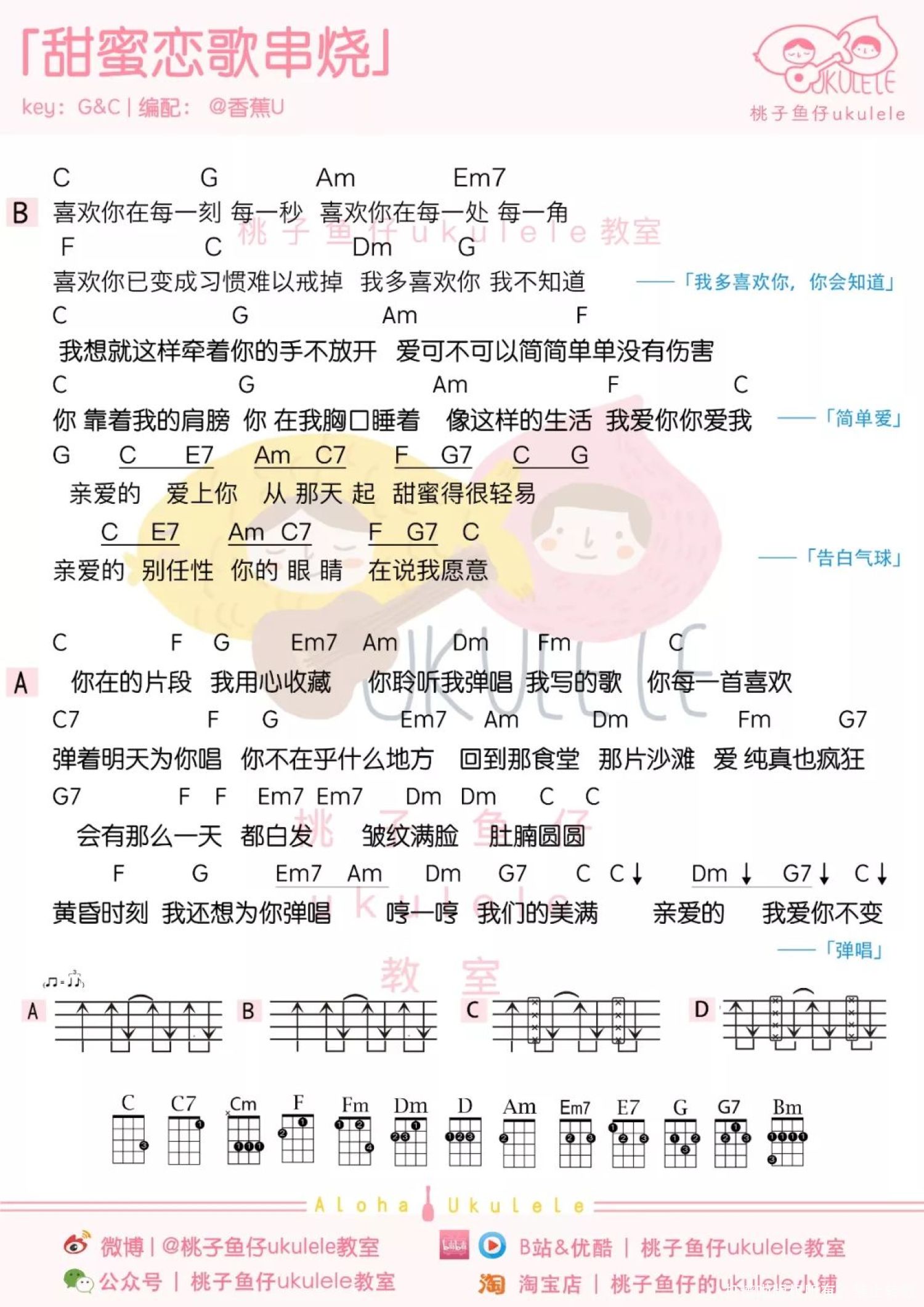 曲谱介绍: 【 甜 蜜 恋 曲 串 烧 】弹唱   弹唱教学   甜蜜恋歌串烧