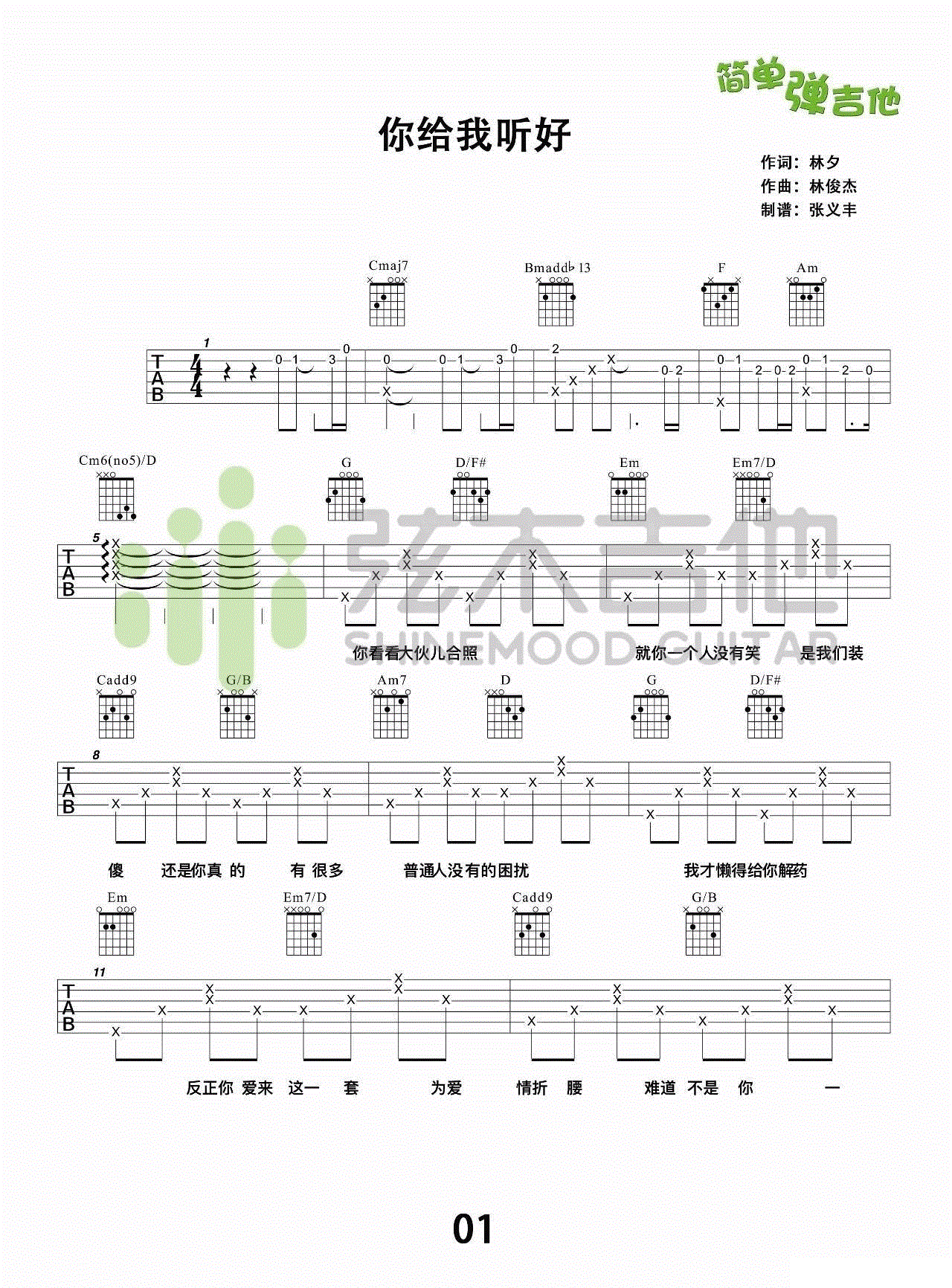 曲谱介绍: 陈奕迅《你给我听好》吉他弹唱谱,采用C调指法编配原版,共有3张高清图谱。