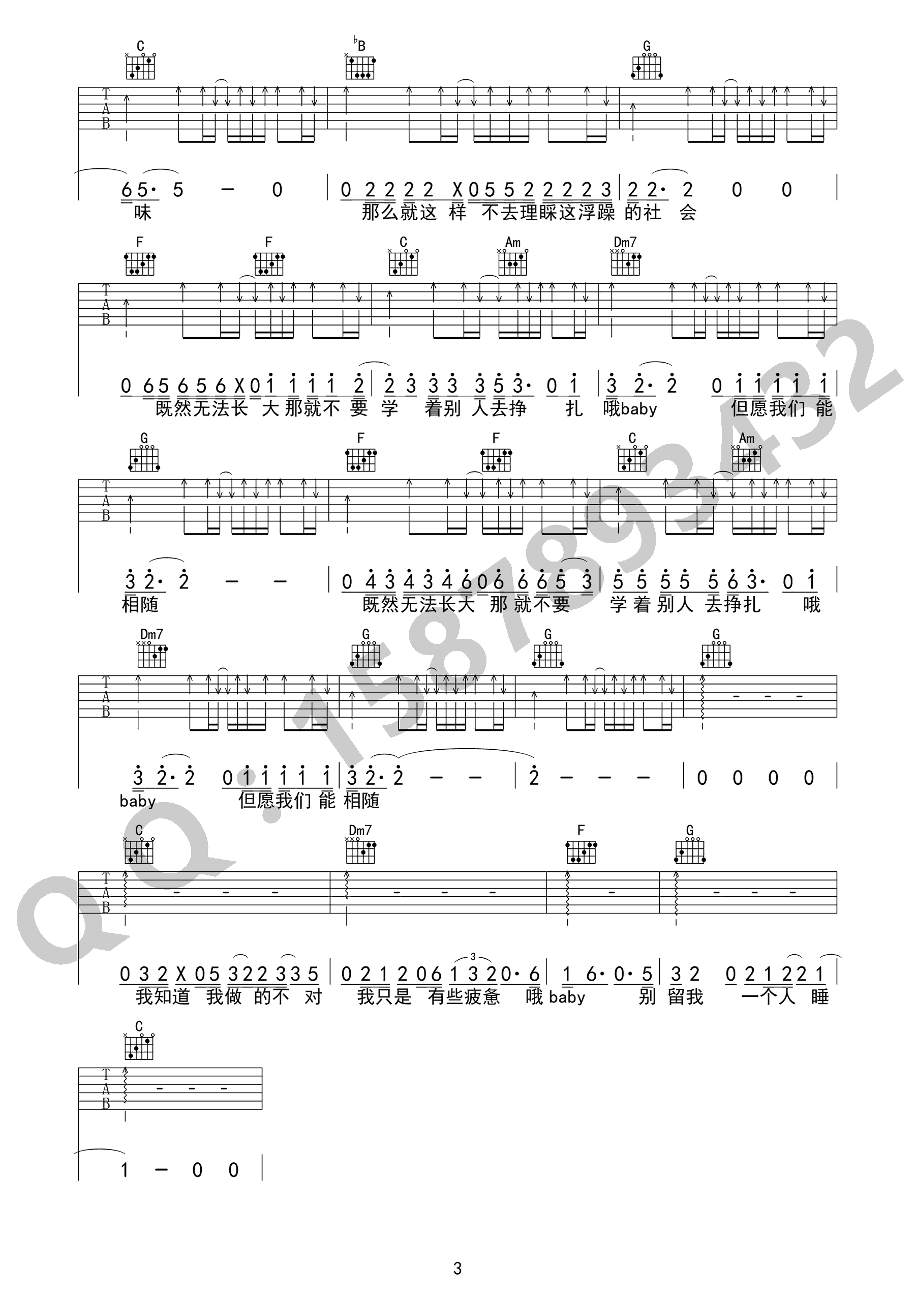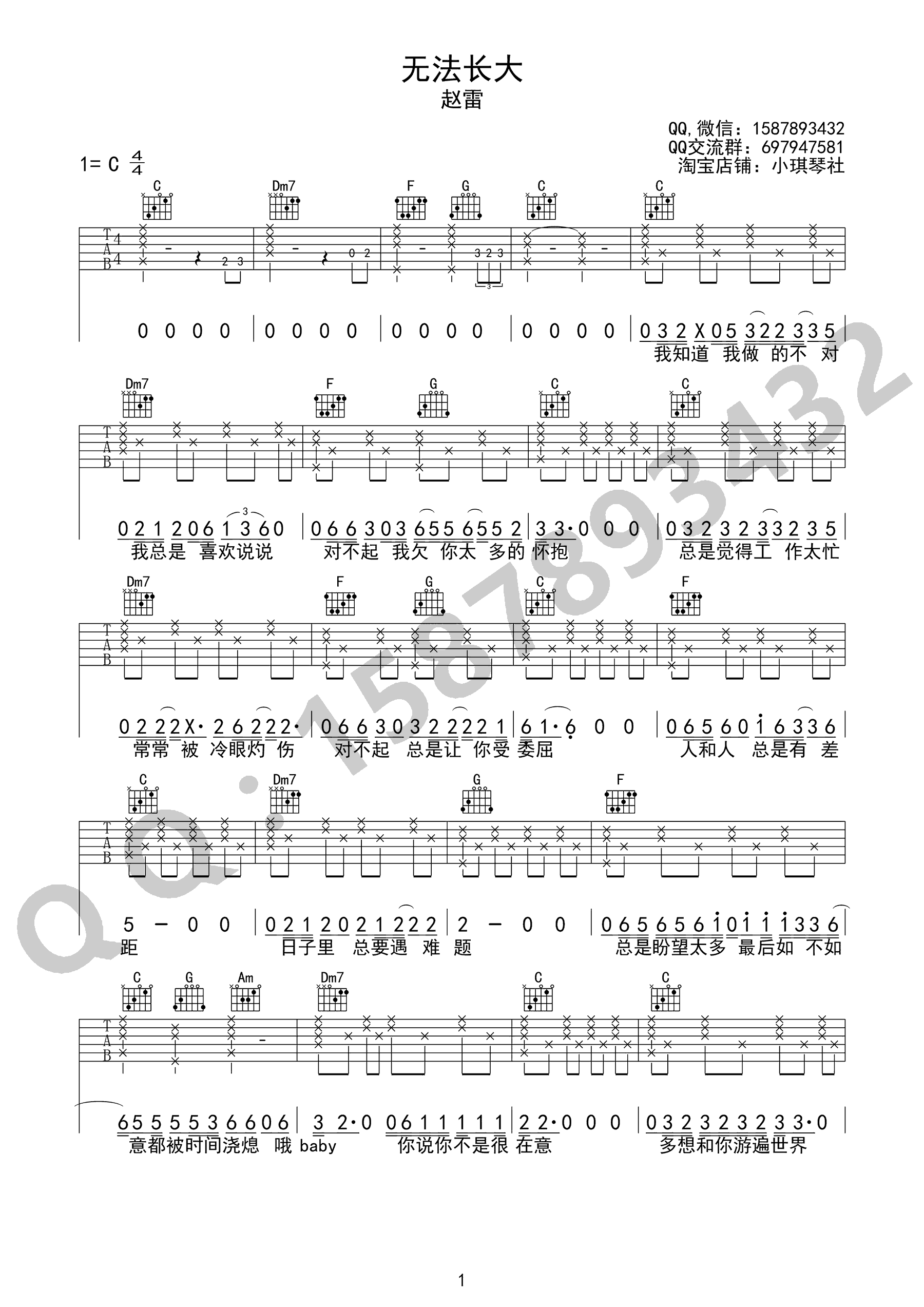 曲谱介绍: 赵雷《无法长大》吉他弹唱谱,采用C调指法编配,共有3张高清图谱。