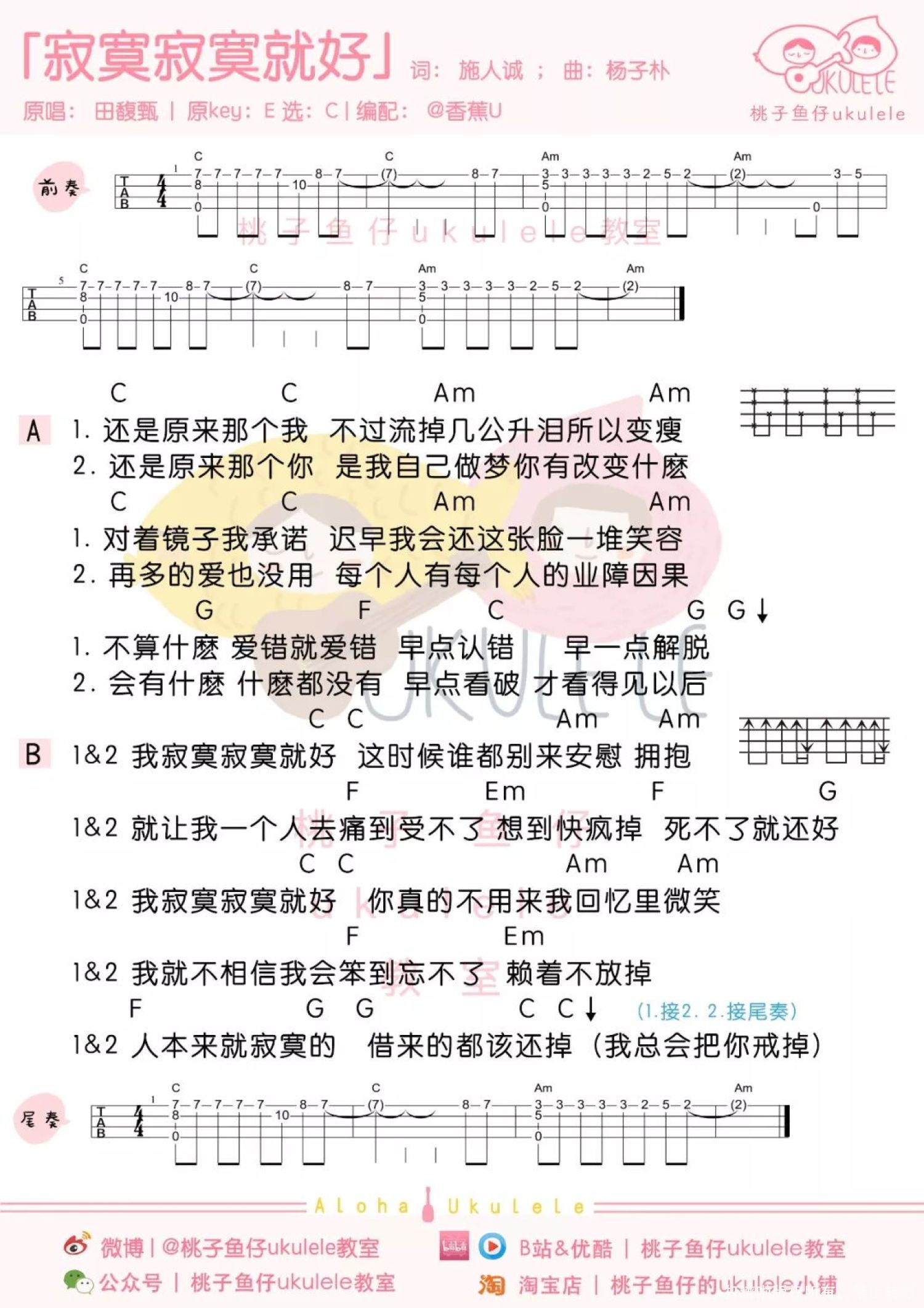 寂寞寂寞就好尤克里里谱 - 田馥甄