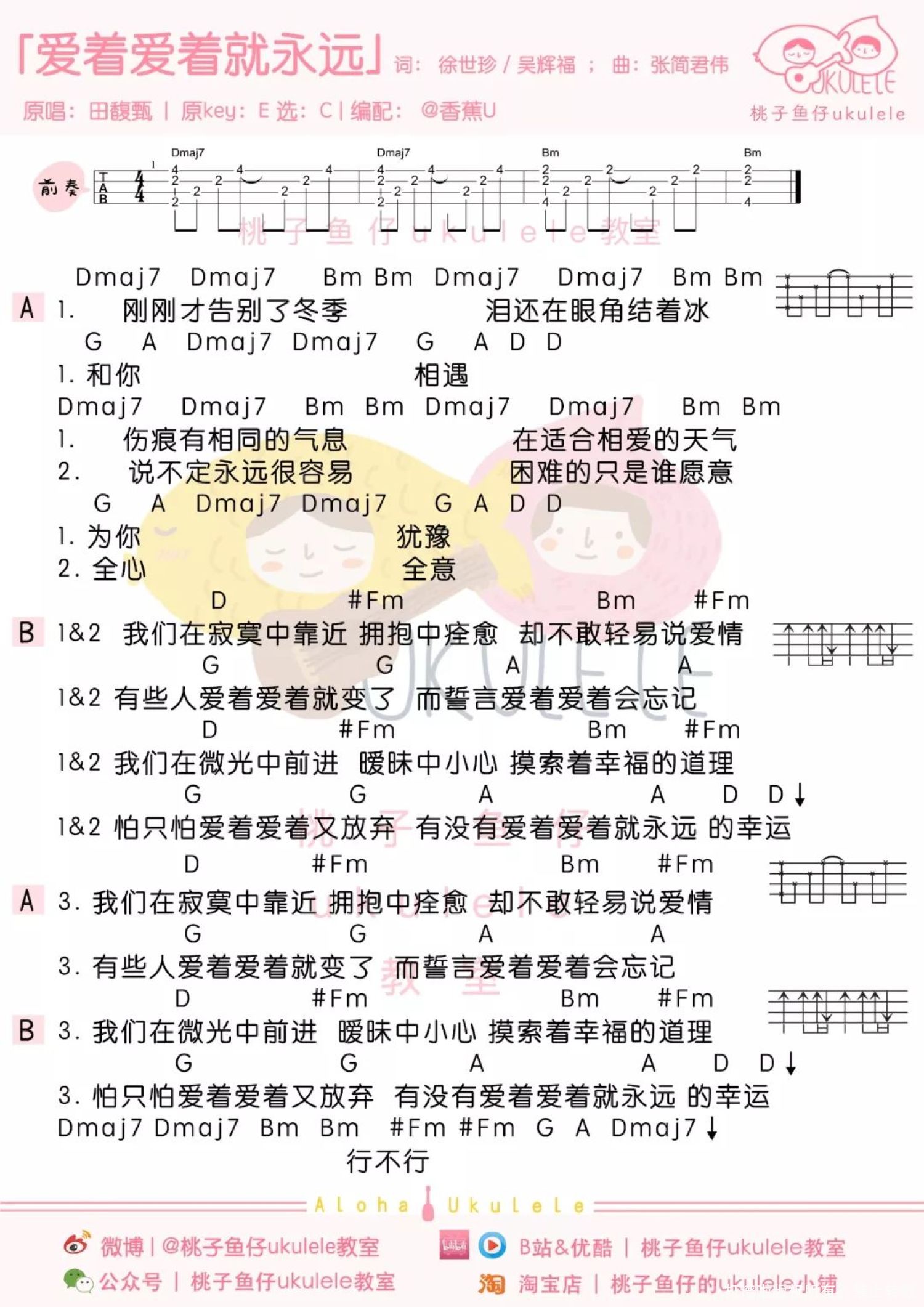 曲谱介绍: 寂寞寂寞就好 教学   寂寞寂寞就好 尤克里里谱   爱着爱着就永远 教学   爱着爱着就永远 尤克里里谱   阿发版