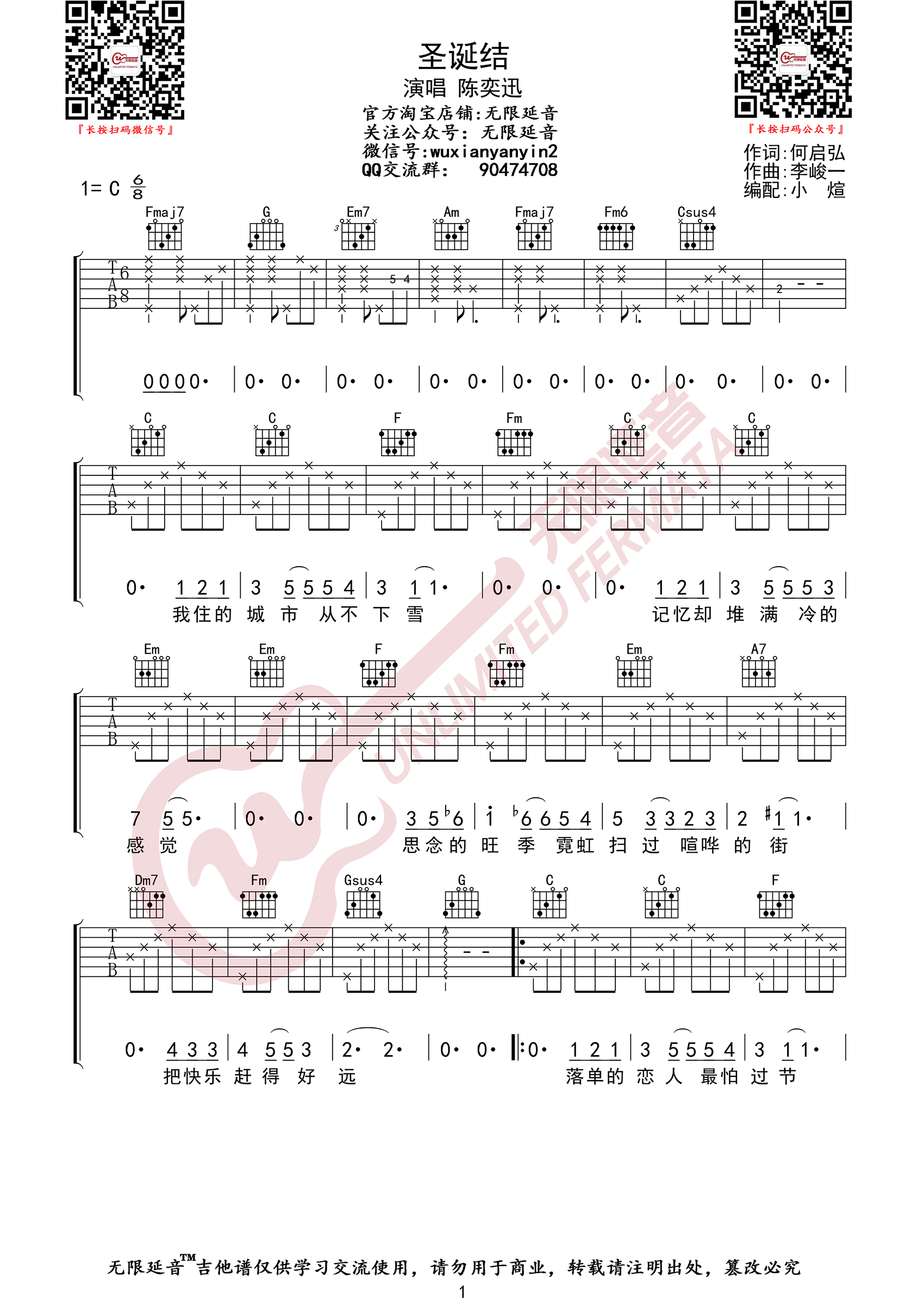 曲谱介绍: 陈奕迅《圣诞结》吉他弹唱谱,采用C调指法编配原版,共有4张高清图谱。
