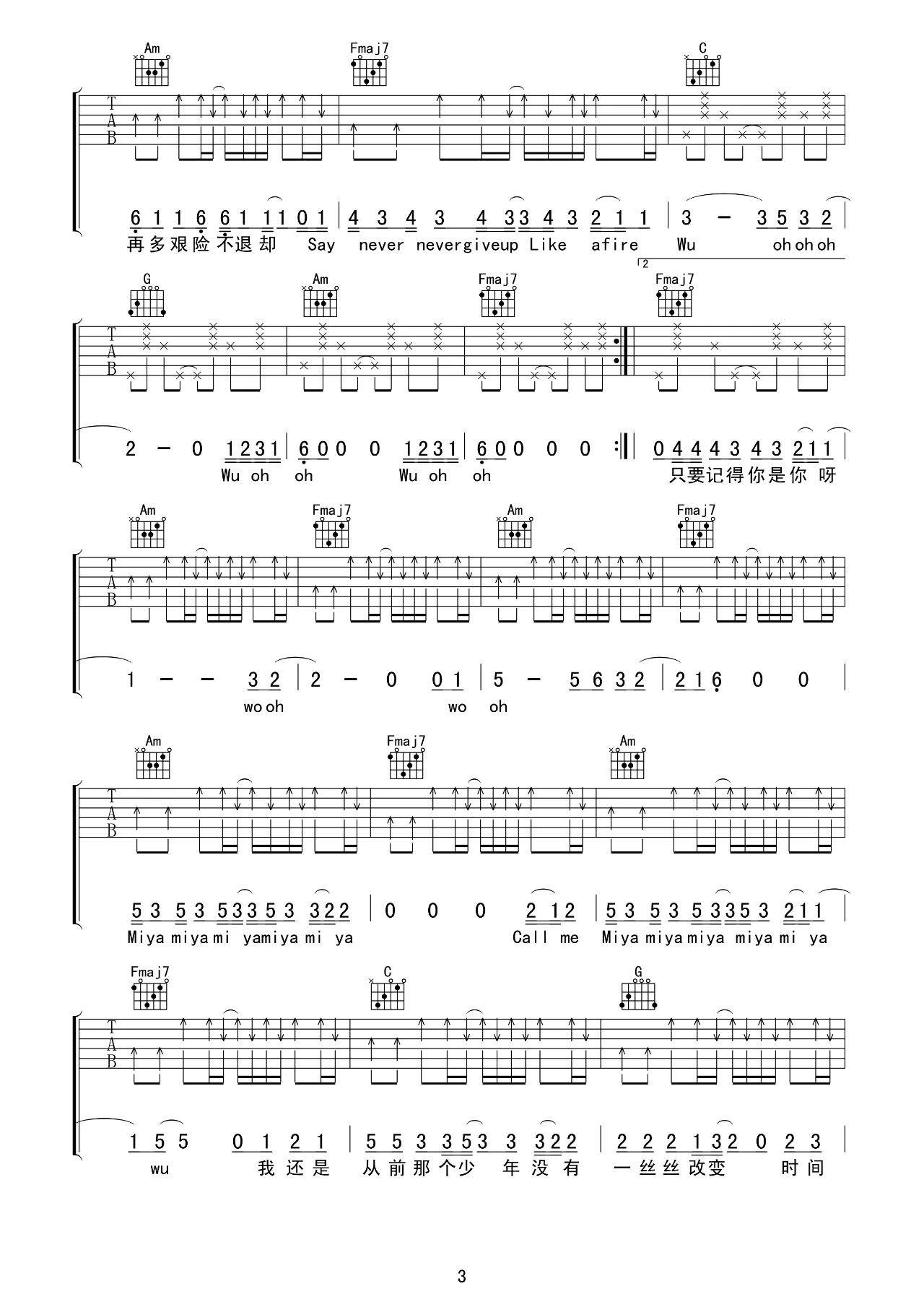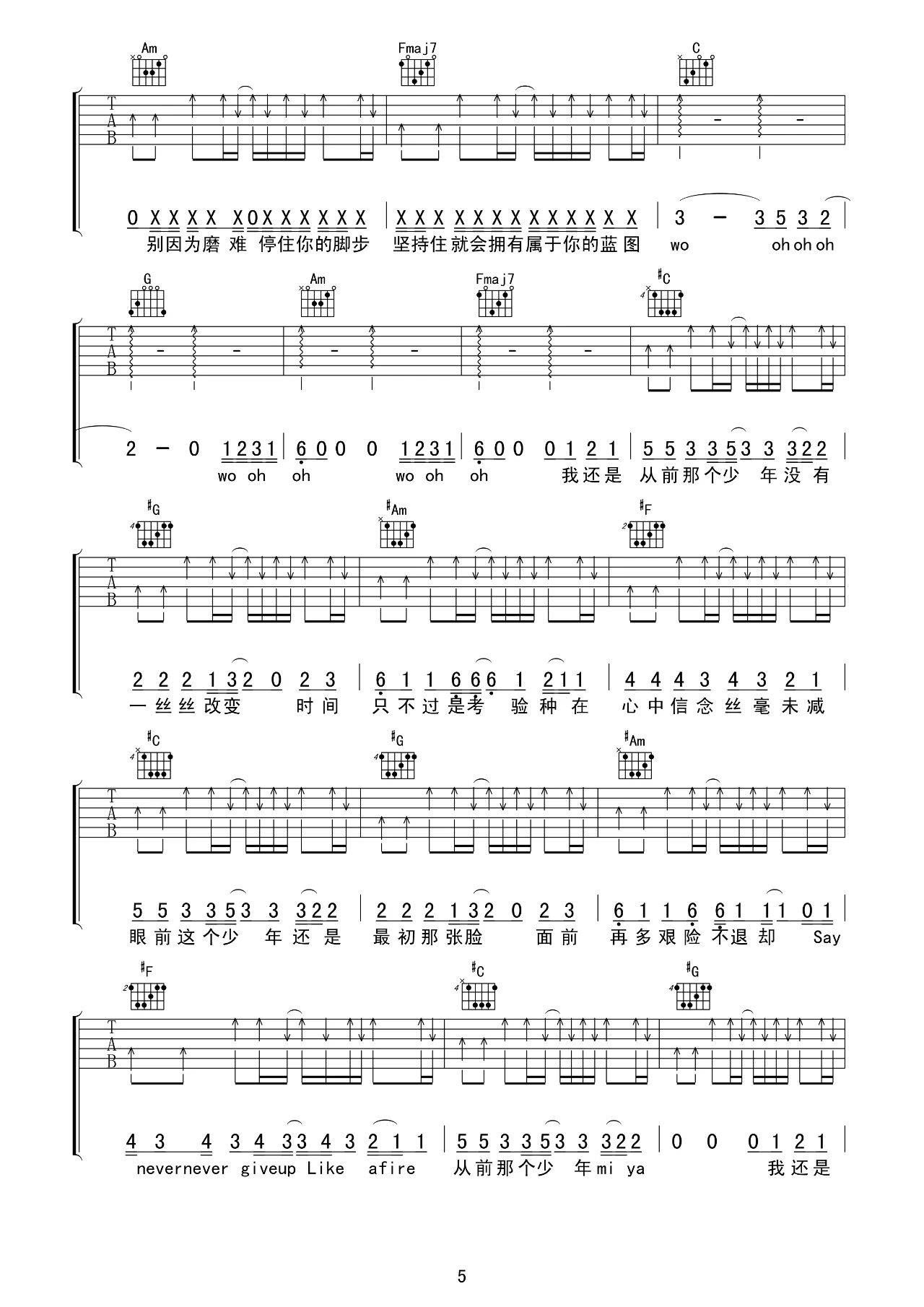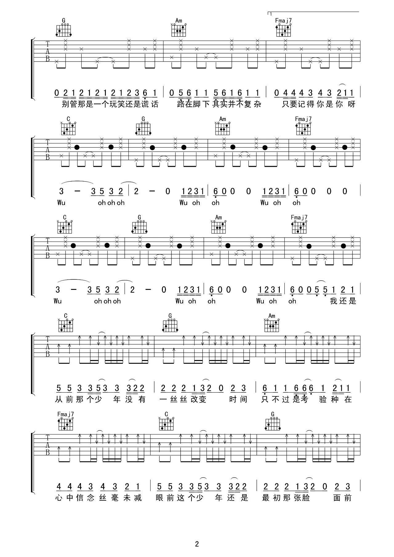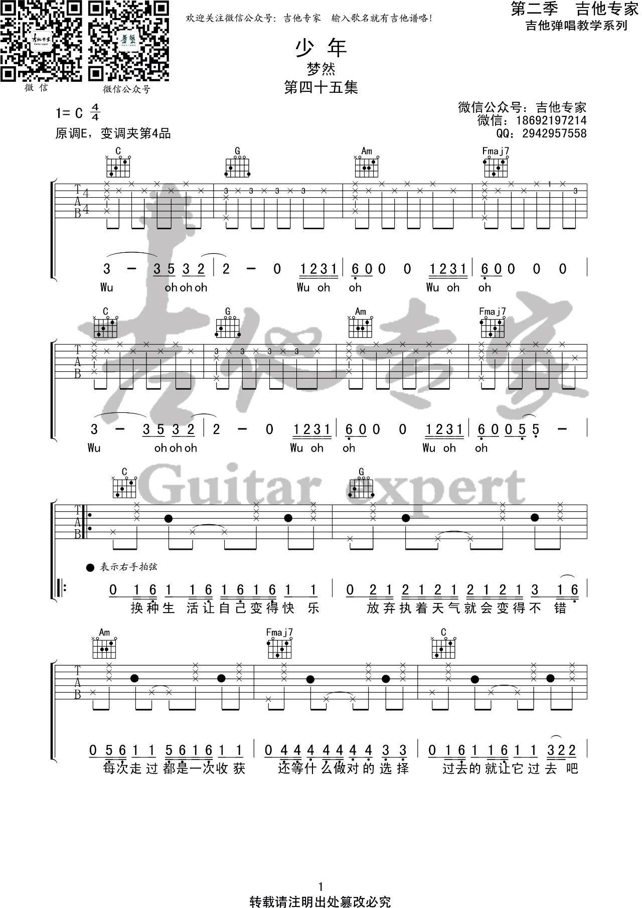 曲谱介绍: 梦然《少年》吉他弹唱谱,采用C调指法编配原版,共有6张高清图谱。