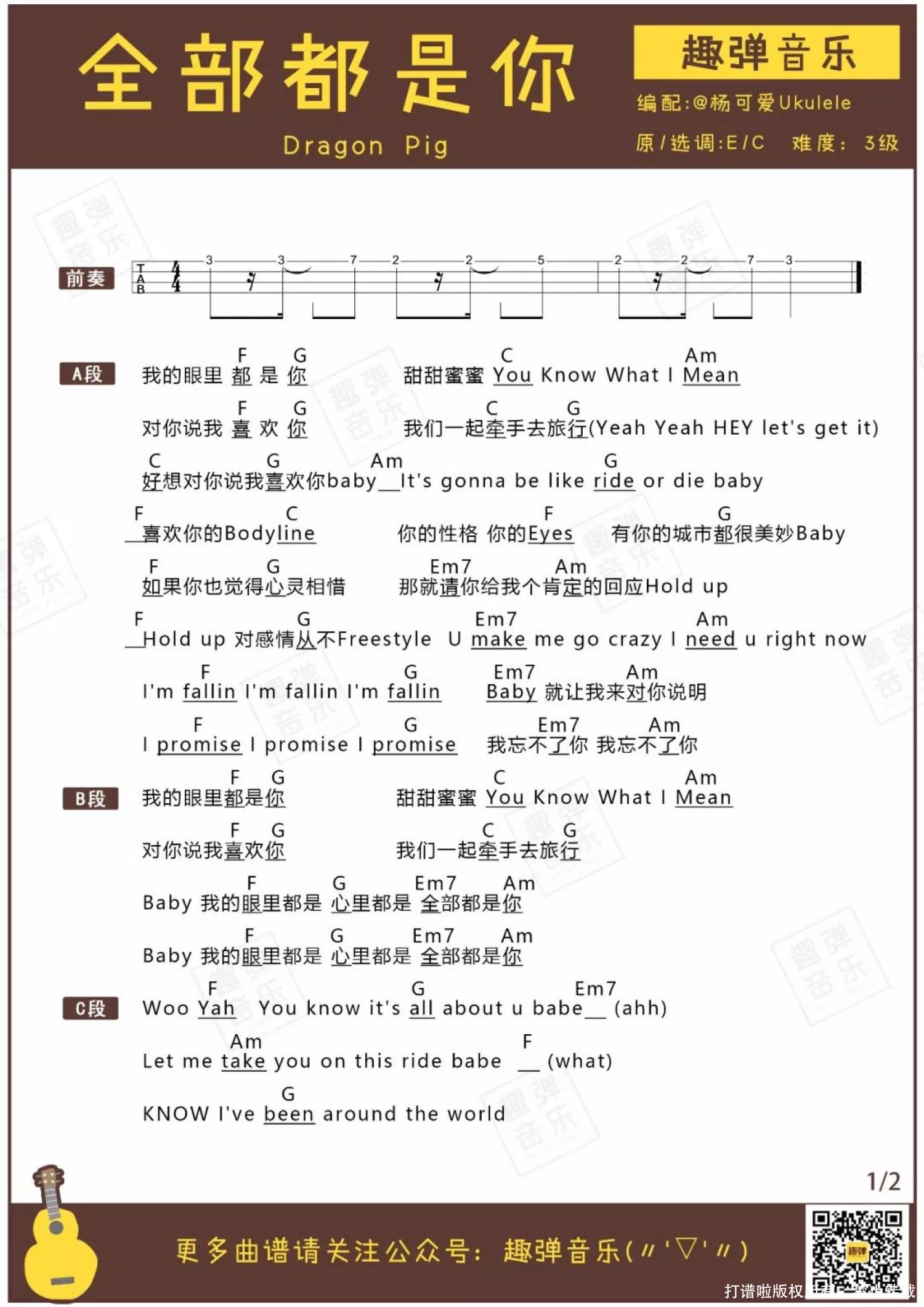全部都是你尤克里里谱 - DP龙猪(Dragon Pig)、CNBALLER 、Cloud Wang