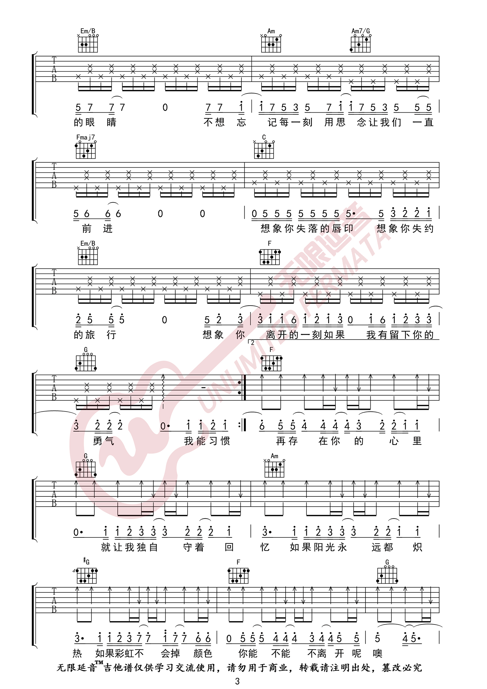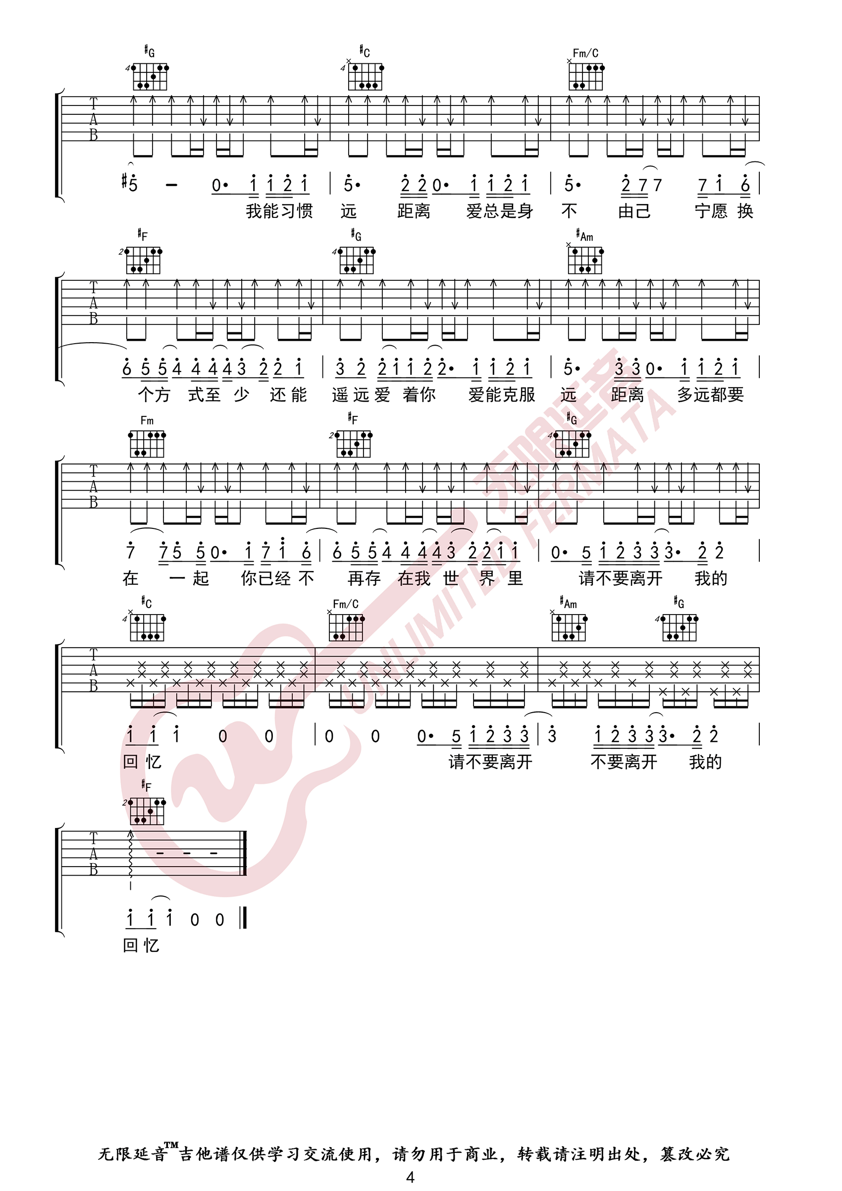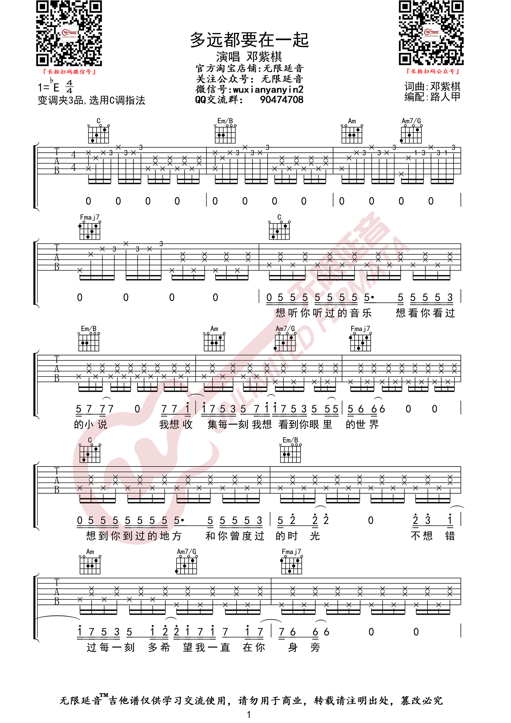 曲谱介绍: 邓紫棋《多远都要在一起》吉他弹唱谱,采用C调指法编配原版,共有4张高清图谱。