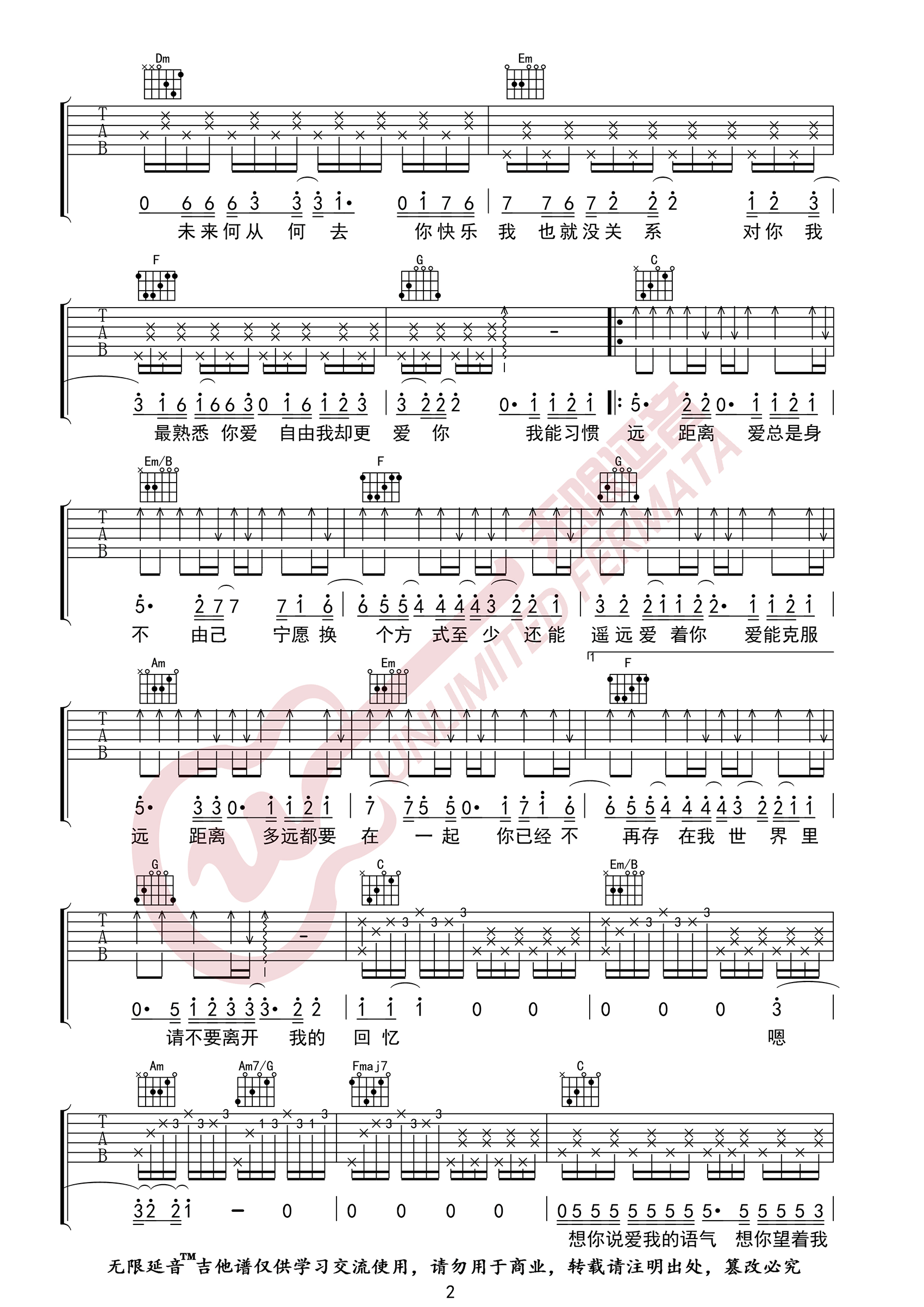 当前位置:琴谱网>吉他弹唱>多远都要在一起