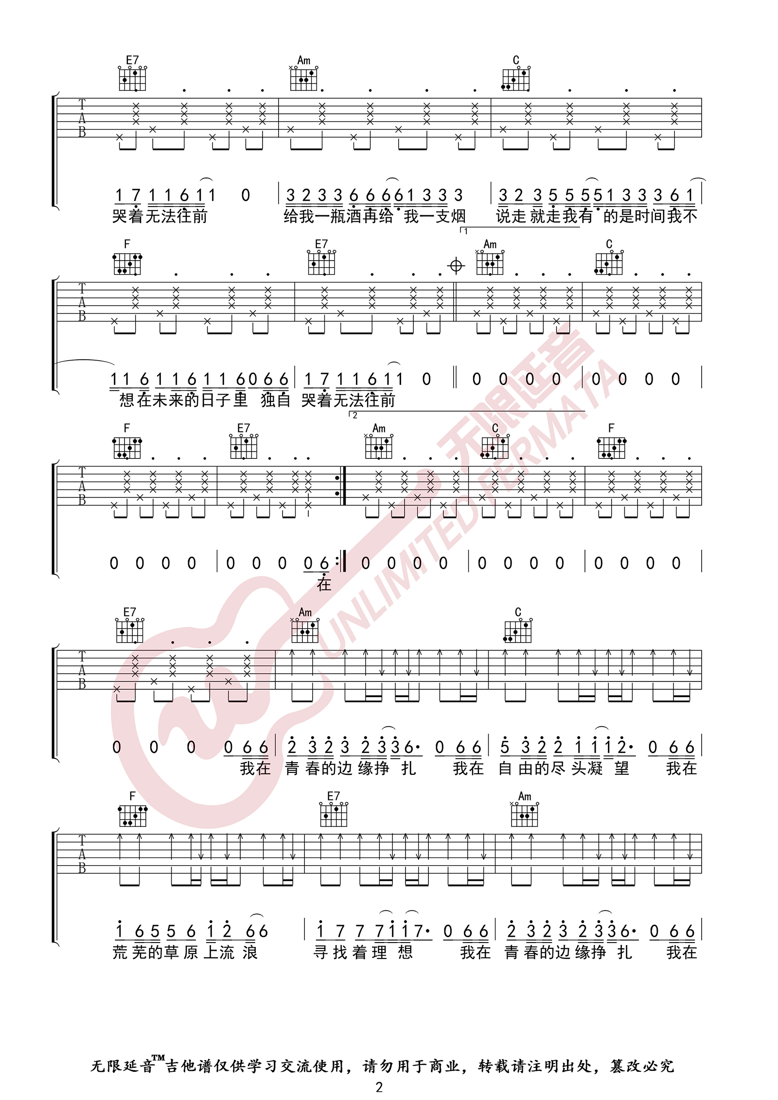 我还年轻我还年轻吉他谱 - 老王乐队 - C调吉他弹唱谱