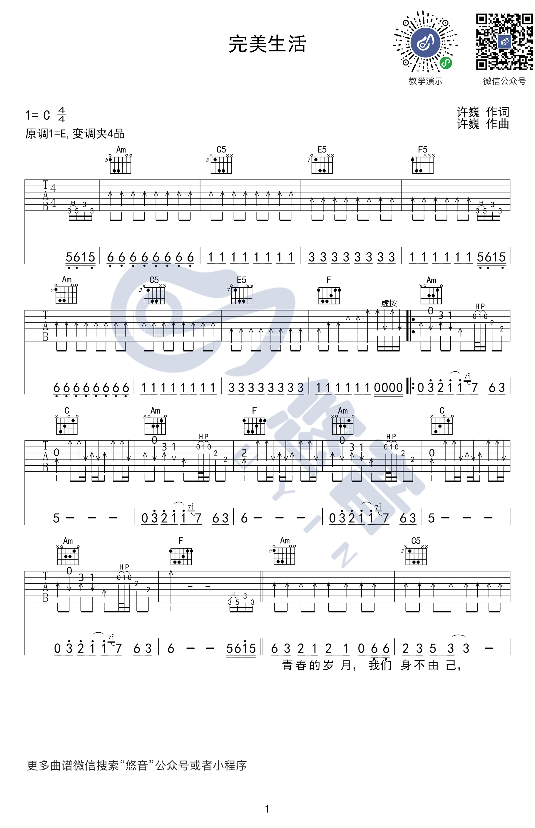 当前位置:琴谱网>吉他弹唱>完美生活