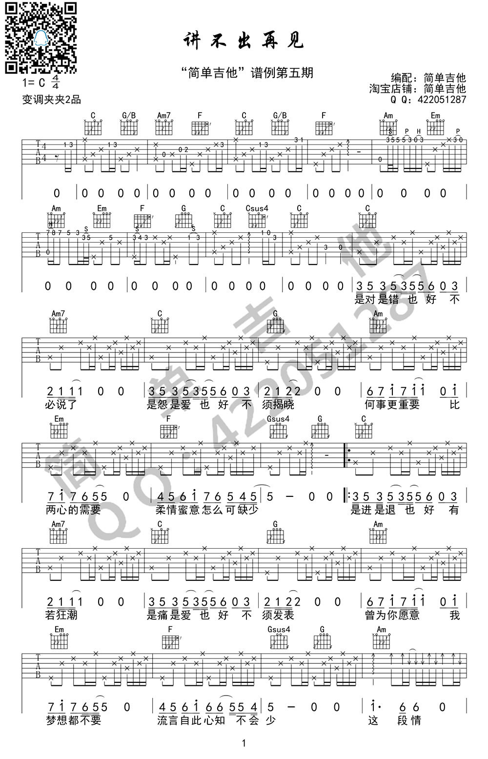 当前位置:琴谱网>吉他弹唱>讲不出再见