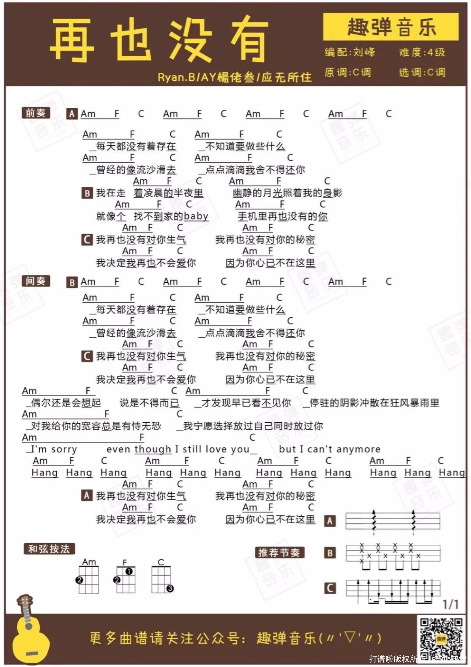 再也没有尤克里里谱 - Ryan.B/AY杨佬叁