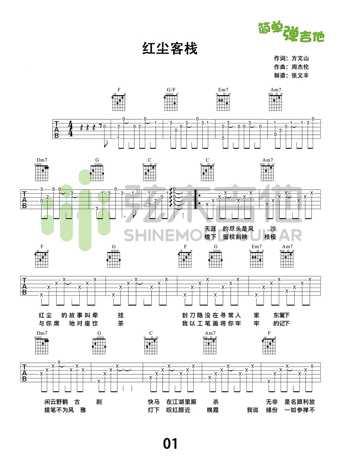 红尘客栈吉他谱 - 周杰伦 - C调吉他弹唱谱