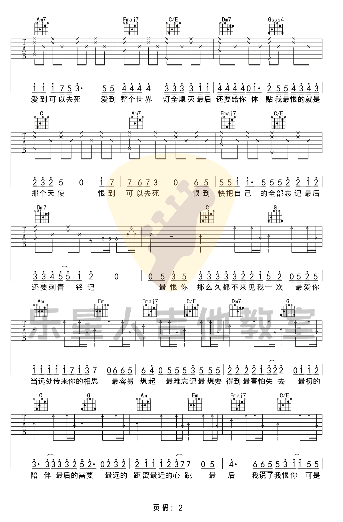 曲谱介绍: 曾轶可《最天使》吉他弹唱谱,采用C调指法编配原版,共有3张高清图谱。