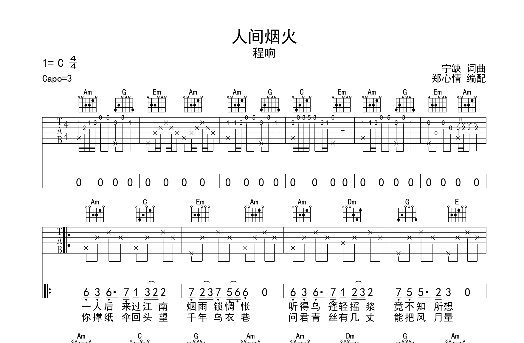 人间烟火吉他谱 - 程响 - C调吉他弹唱谱