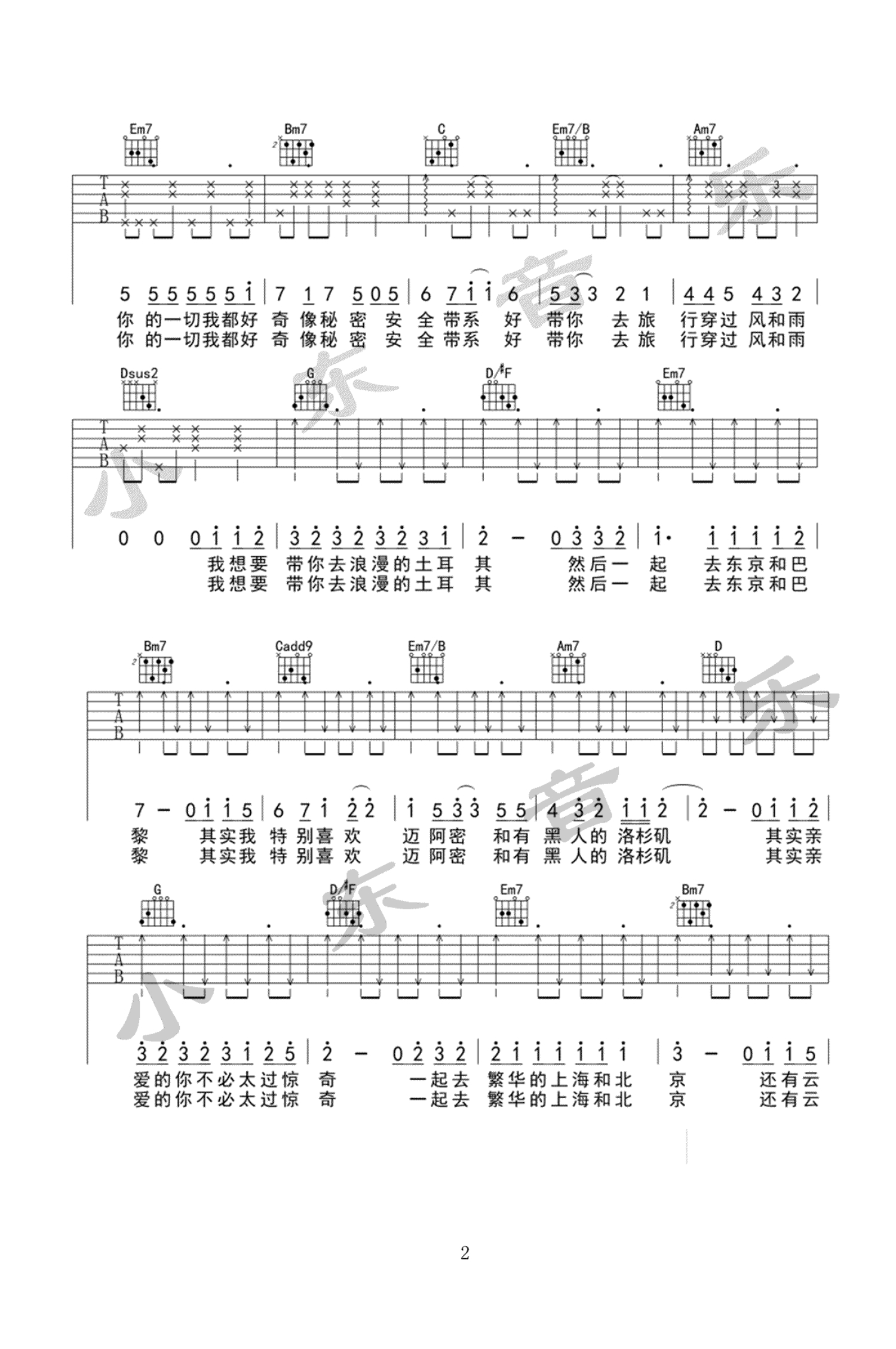 当前位置:琴谱网>吉他弹唱>带你去旅行